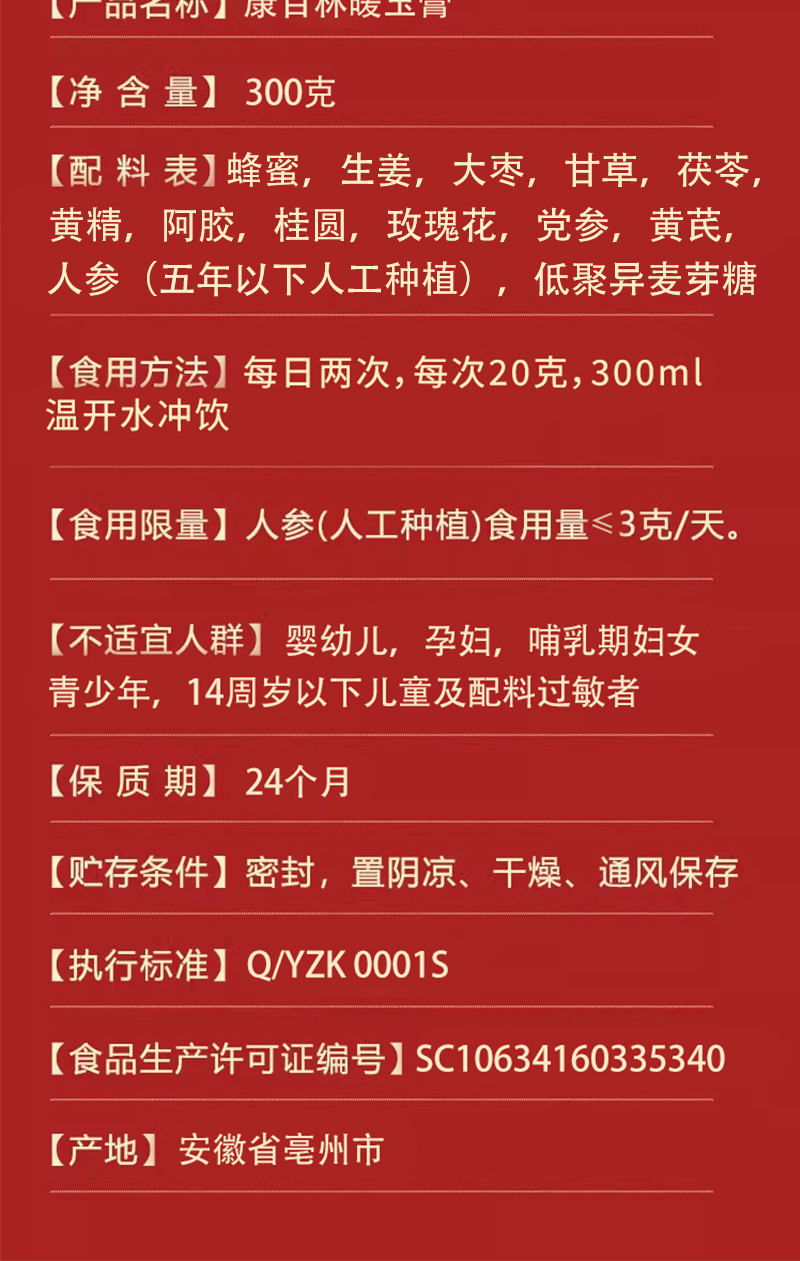 康百林暖玉膏 阿胶姜枣暖玉膏姜枣暖身膏暖玉膏康百林旗舰店正品