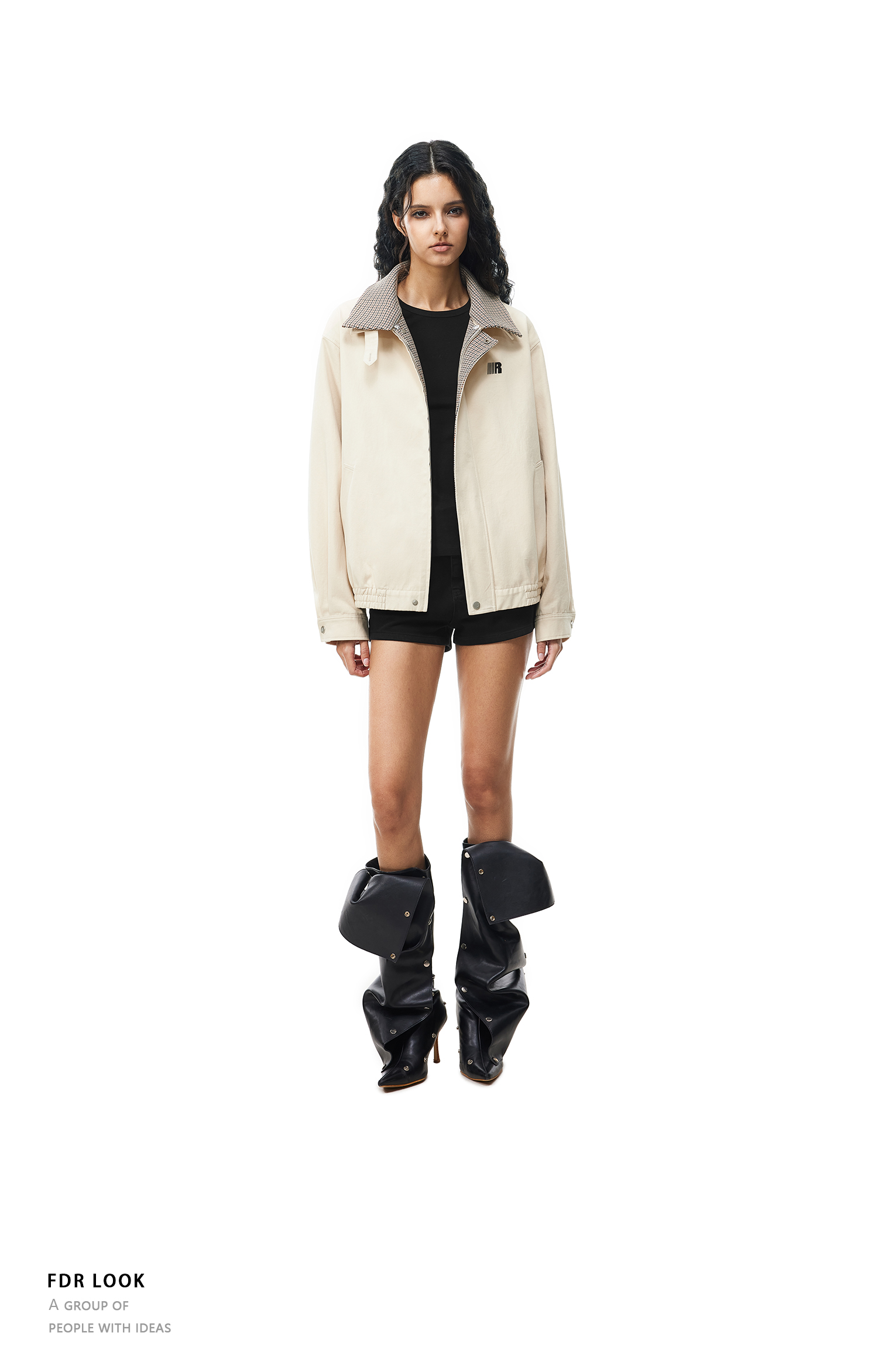 FDR官方店 千鸟格翻领夹克外套男女秋季潮牌情侣宽松撞色开衫上衣