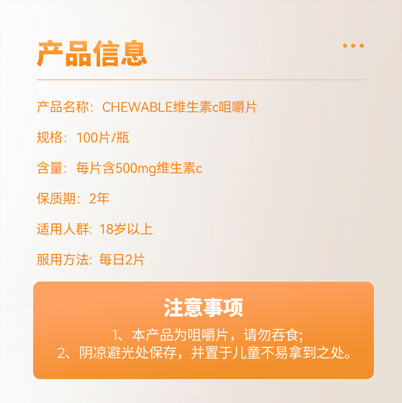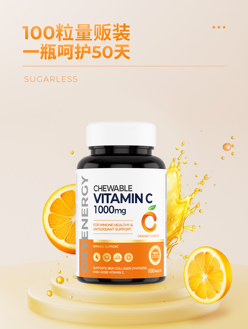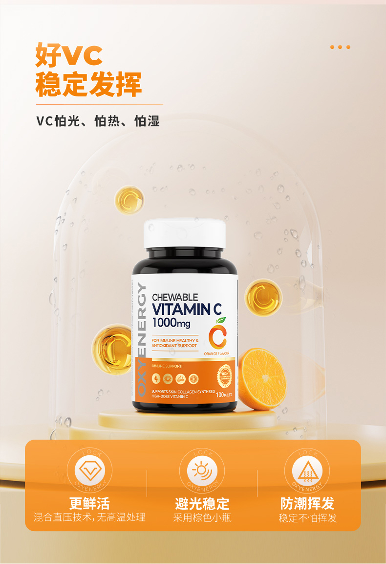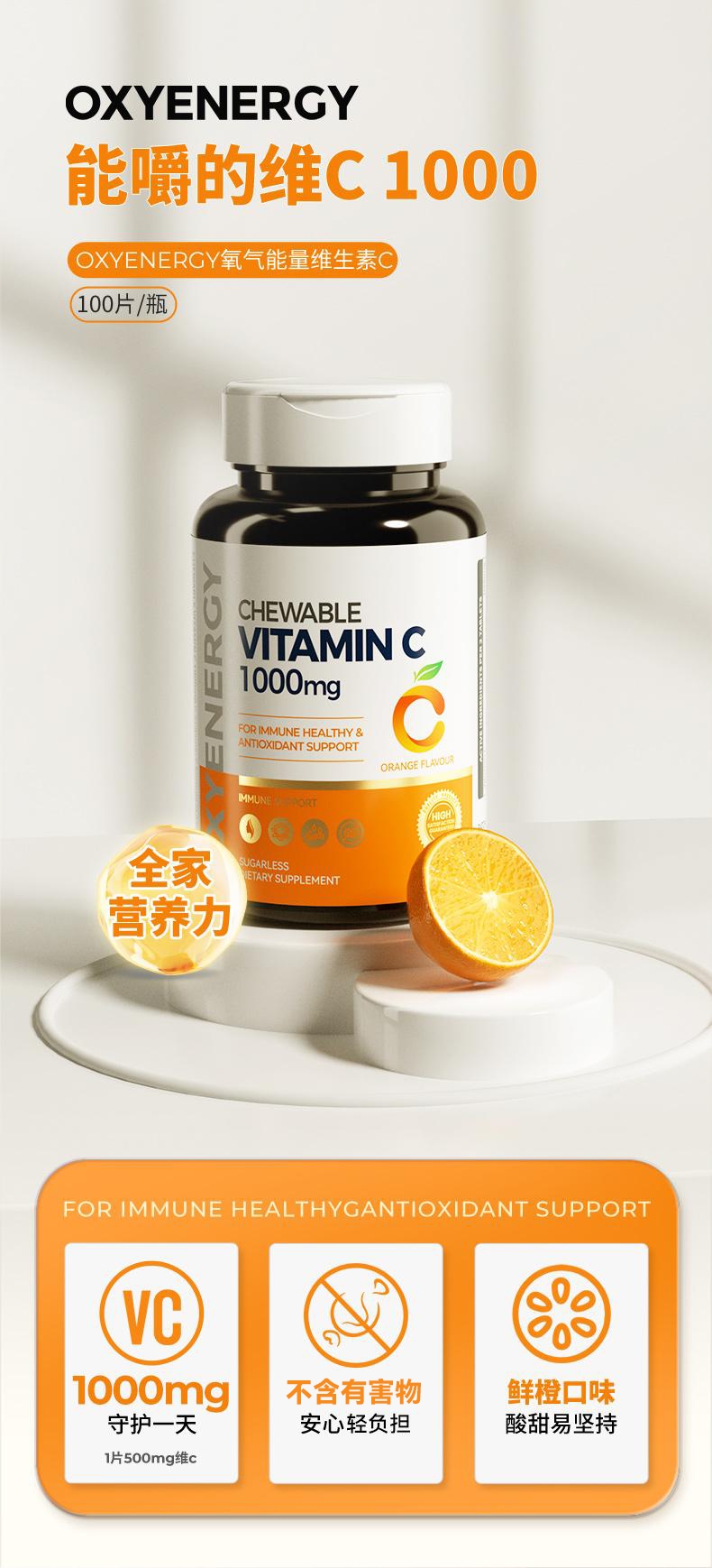 OXYENERGY氧气能量维生素c咀嚼片100片/瓶维他命C进口营养