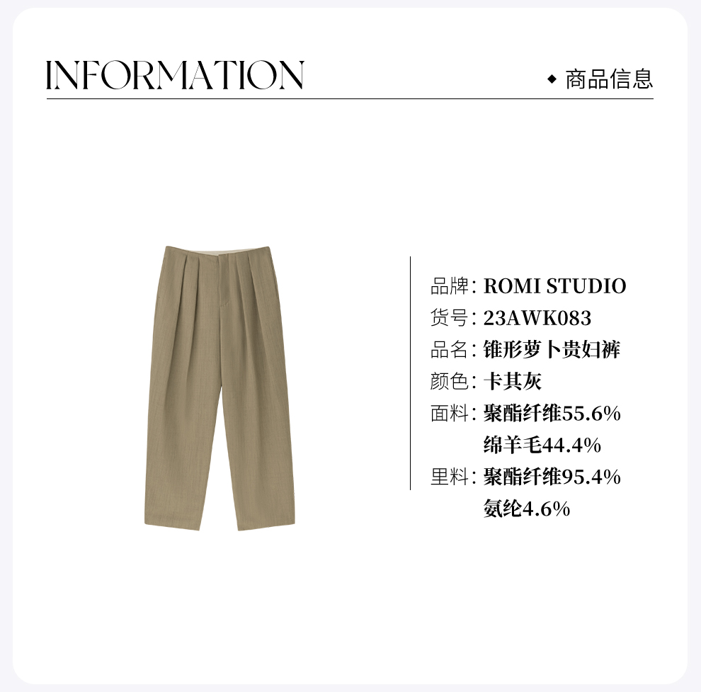 ROMI STUDIO“内外兼备” 进口羊毛高腰阔腿锥形萝卜贵妇裤23AWK083