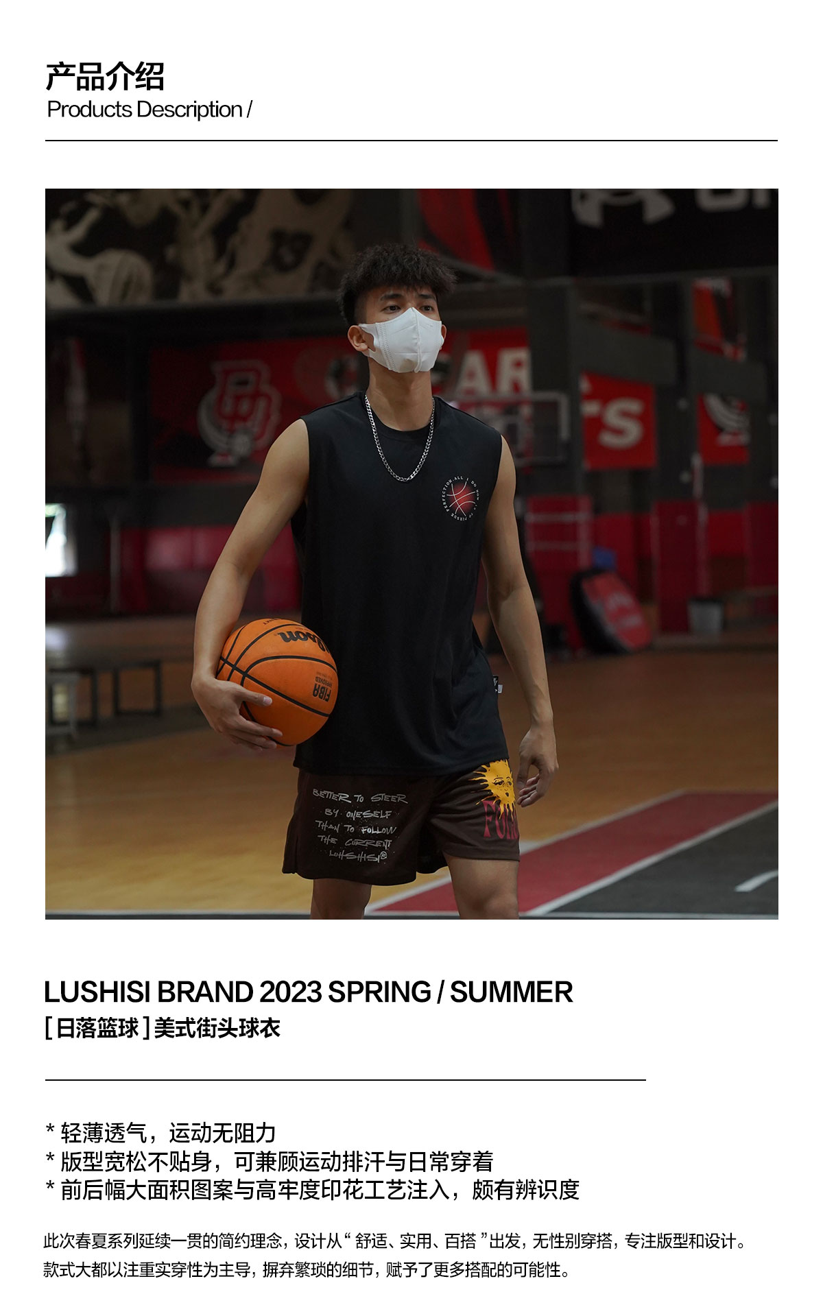 LUSHISI[日落篮球]夏季篮球背心美式运动无袖t恤宽松街头跑步训练