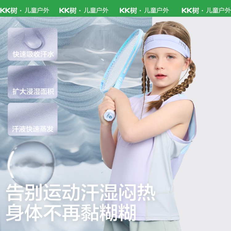 KK树儿童背心夏季薄款女孩男童无袖背心宝宝外穿速干透气2025新款超动感运动背心