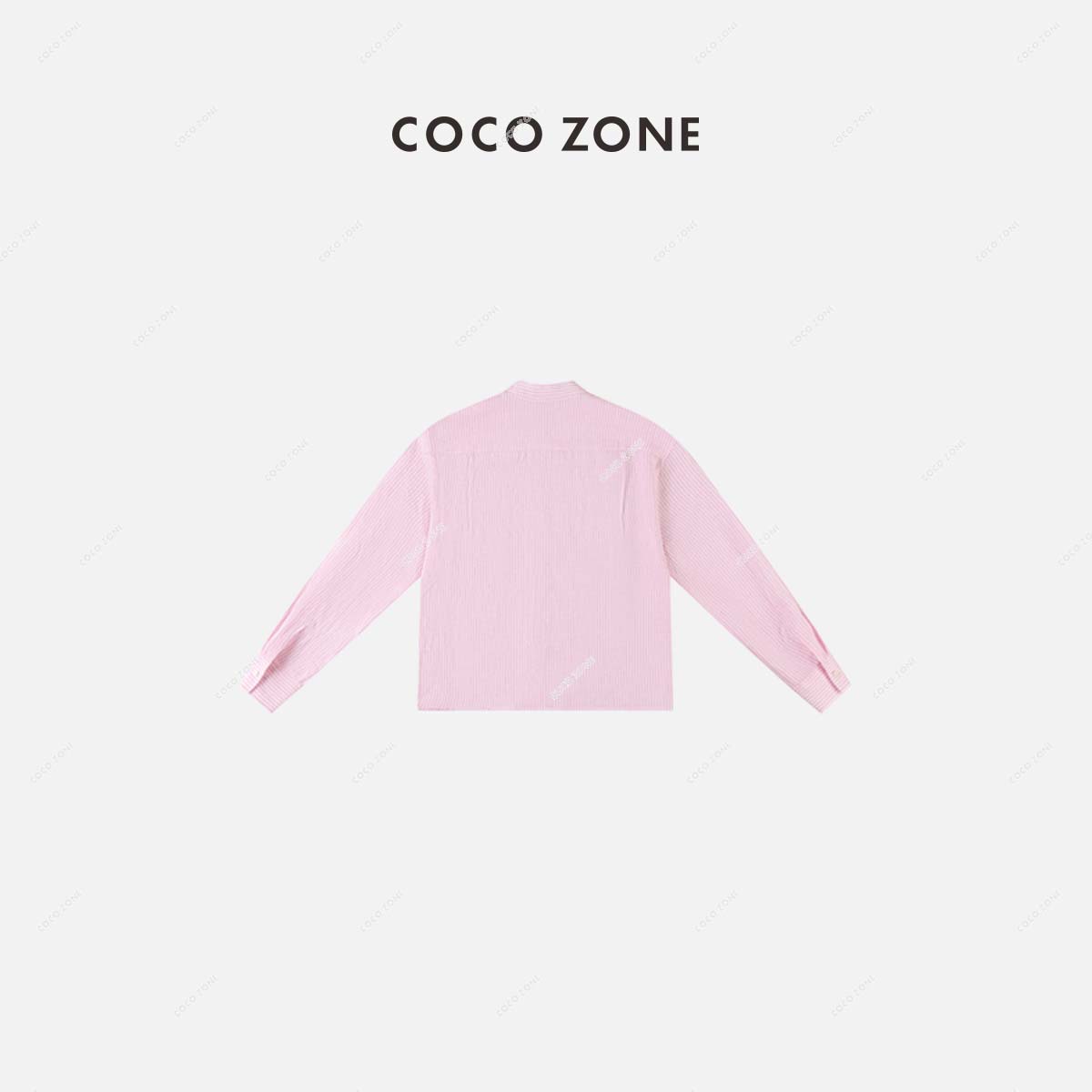 COCO ZONE 通勤风麻料长袖条纹衬衫上衣 23C18877