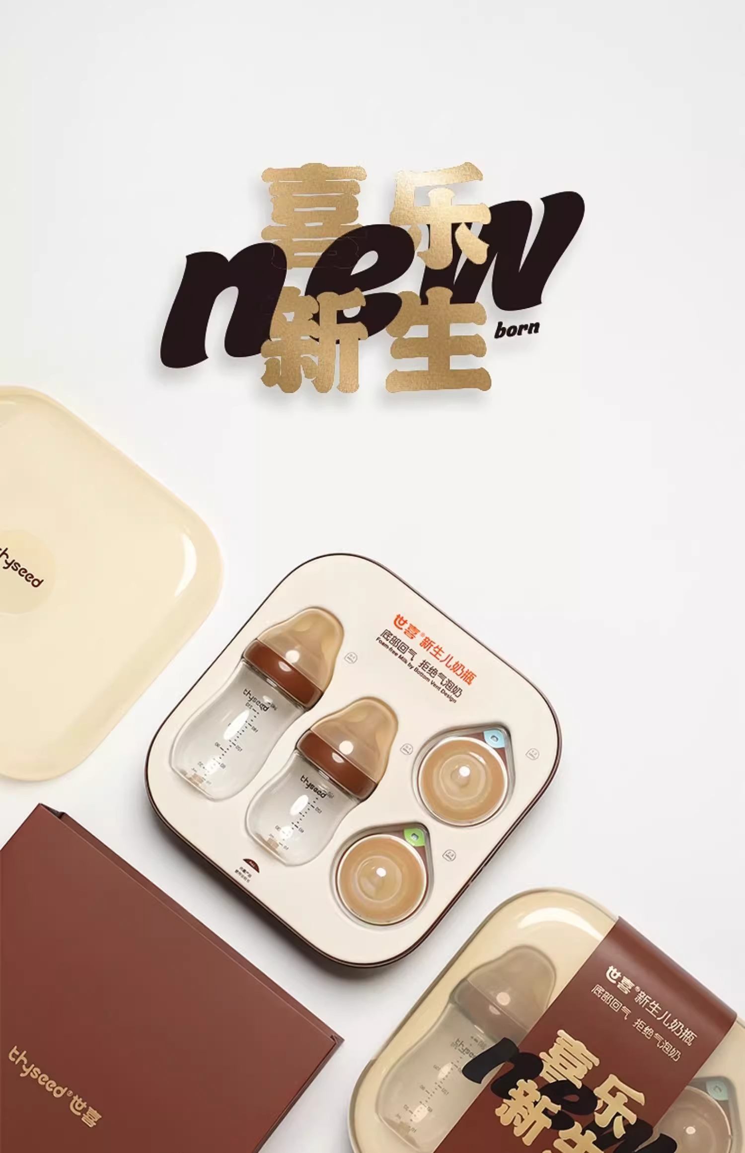 thyseed世喜百日瓶-新生儿奶瓶礼盒(胡桃棕)