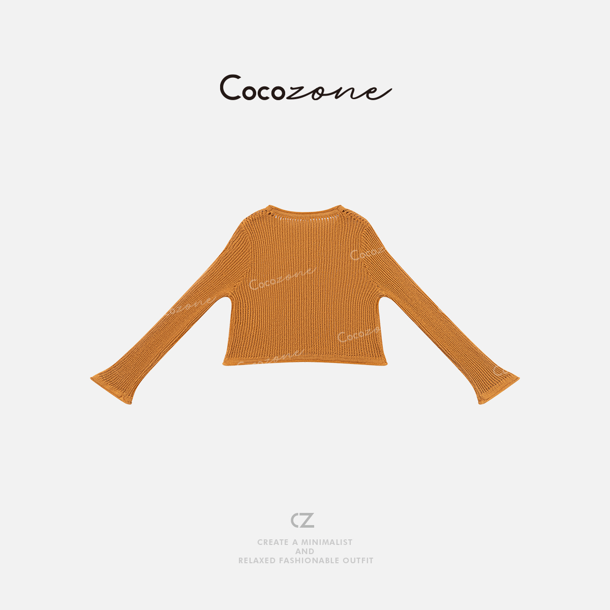 COCO ZONE 刘一一 惬意风V领单排扣针织纹理毛织上衣 CD1A0854