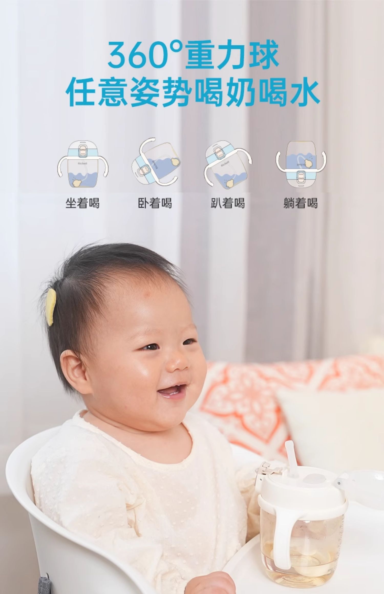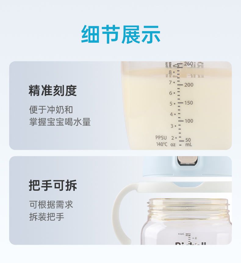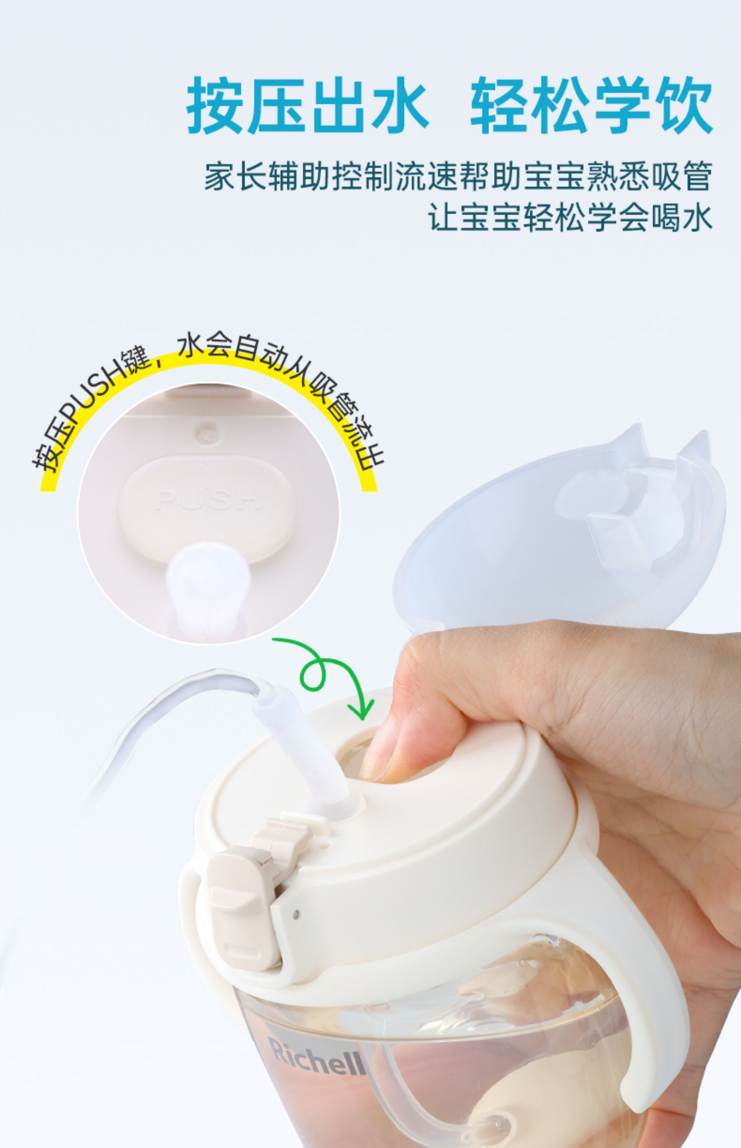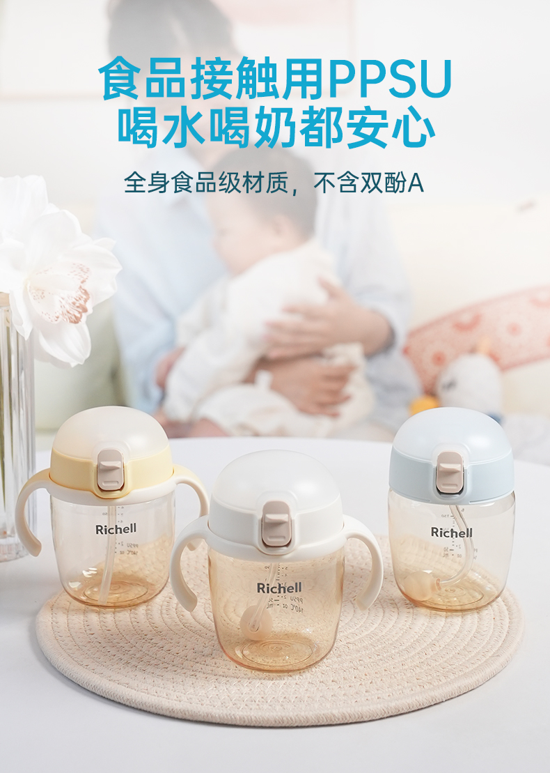 Richell利其尔PPSU儿童学饮杯宝宝水杯吸管喝水牛奶杯5月以上