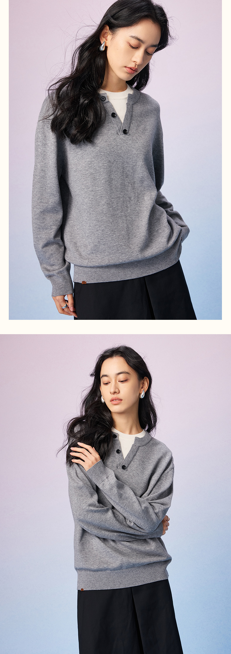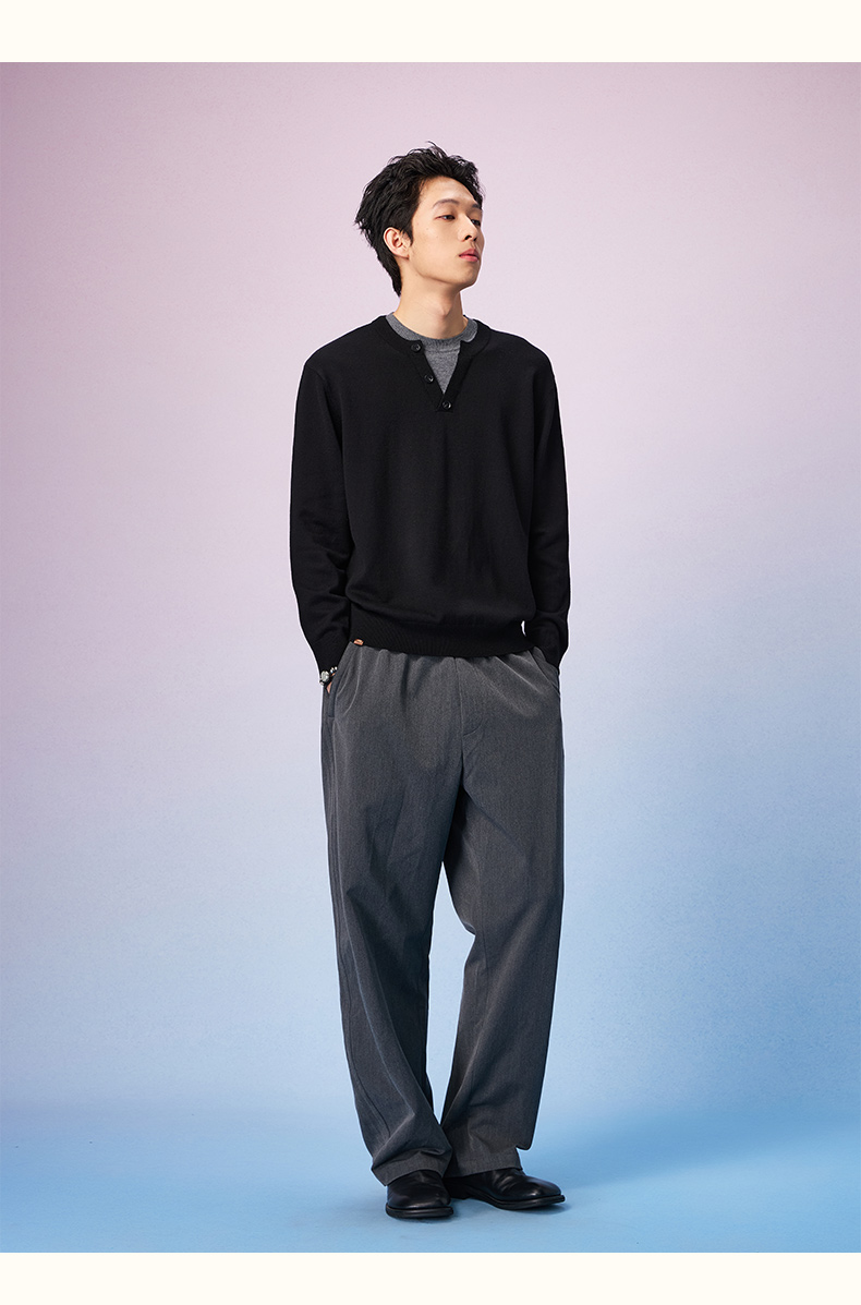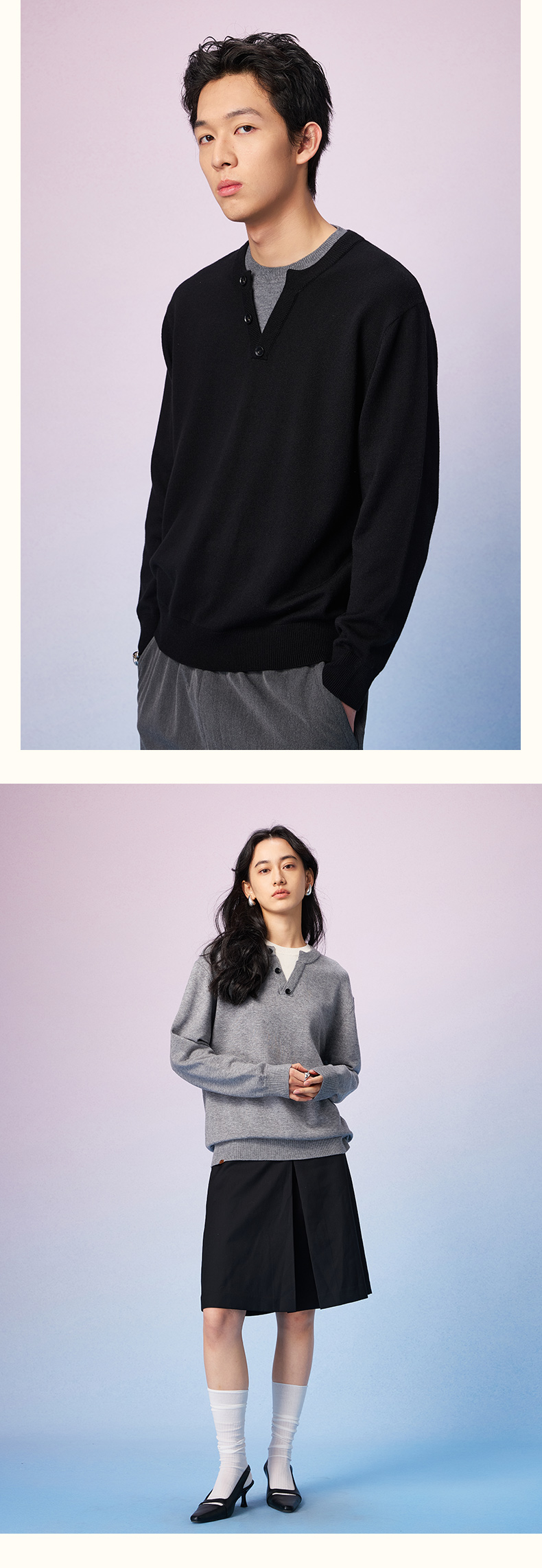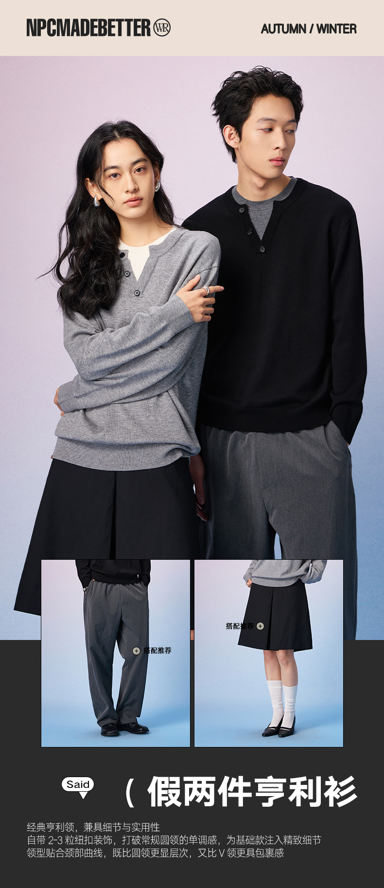 NPC潮牌撞色假二件亨利领针织毛衣男简约潮流秋季上新NP58SW01