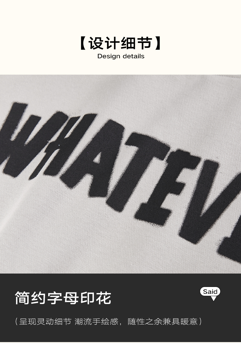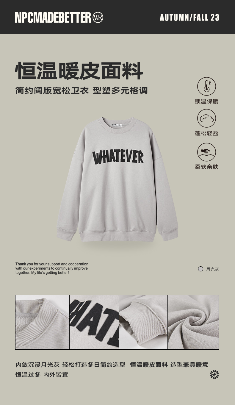 NPC潮牌胸前英文字母LOGO印花圆领卫衣加绒加厚阔版情侣NP39ST37