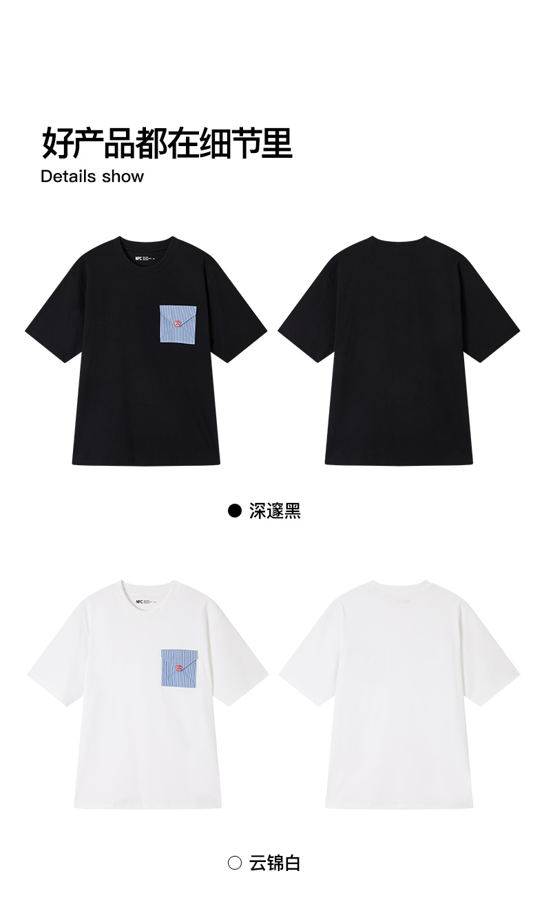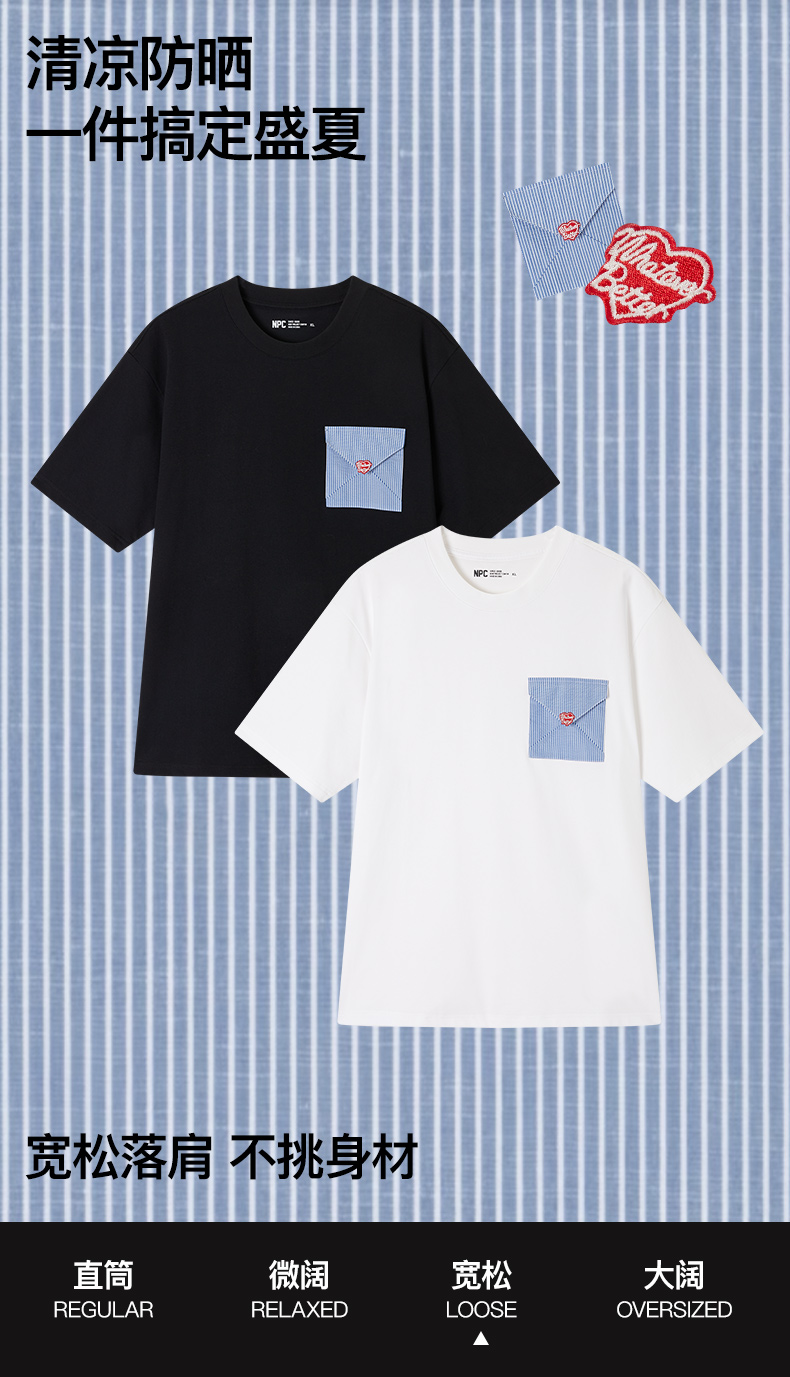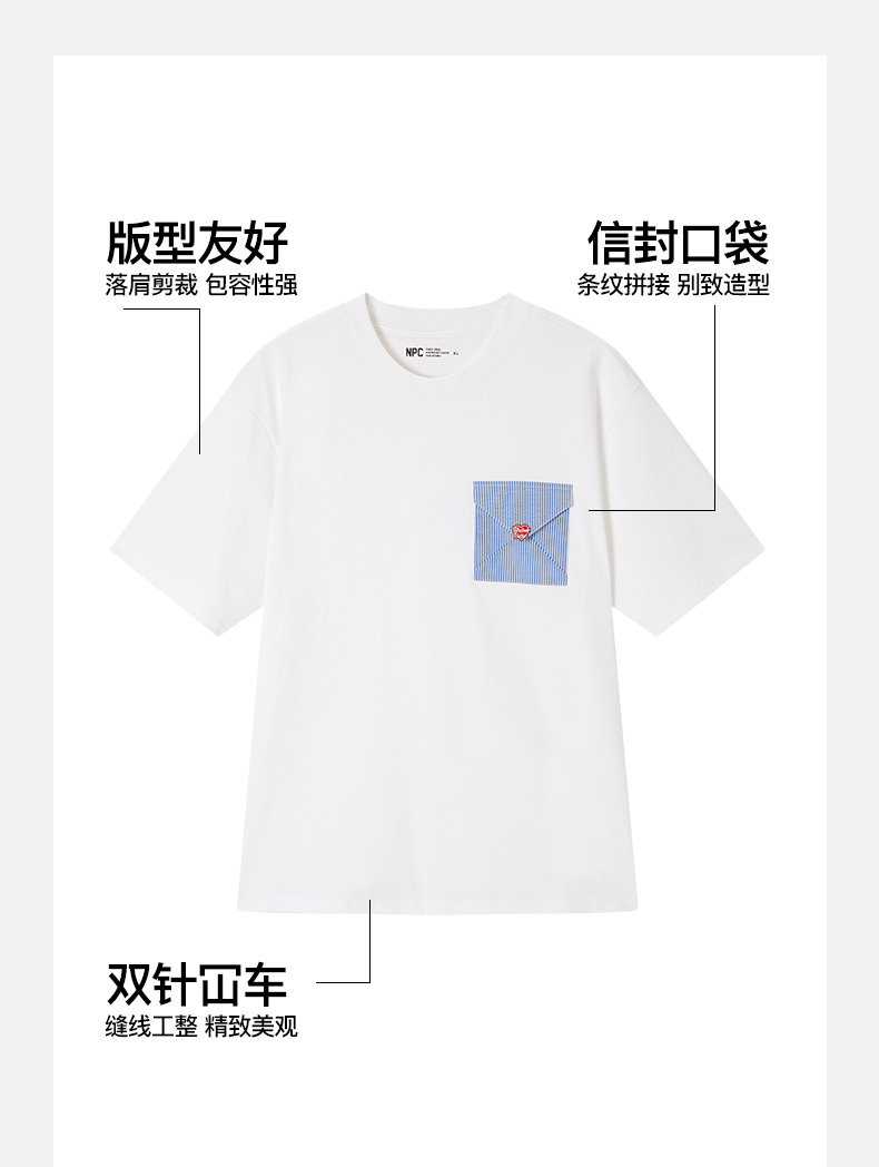 NPC潮牌胸口撞色条纹信封口袋圆领短袖T恤男冰感凉皮NP54TE29