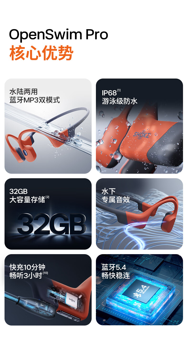 韶音0penSwim Pro 游泳耳机 S710 珊瑚海