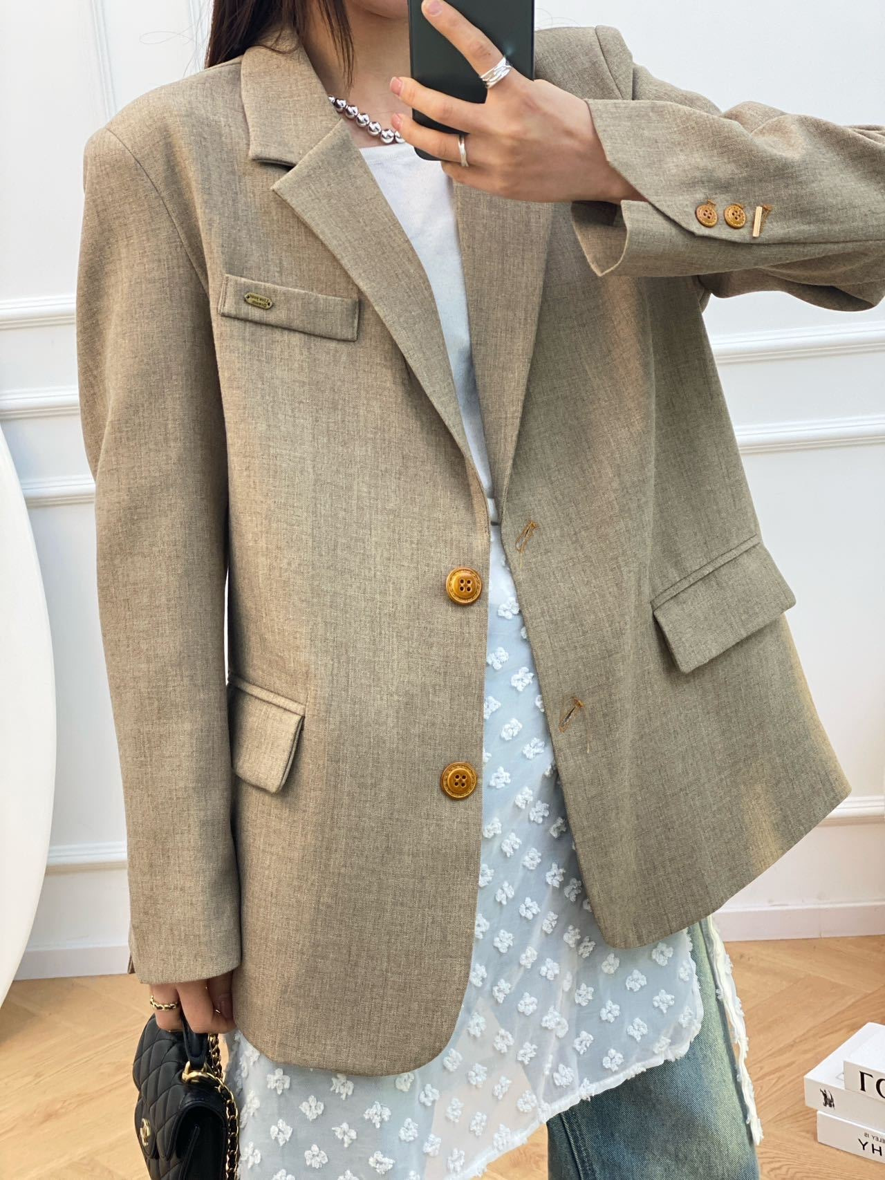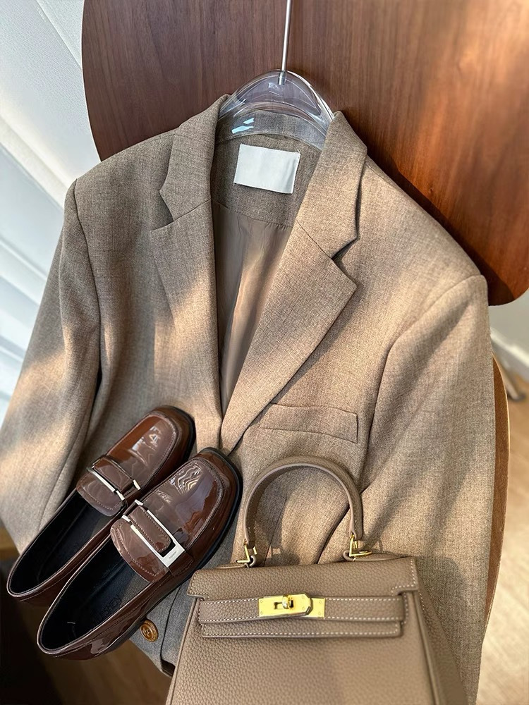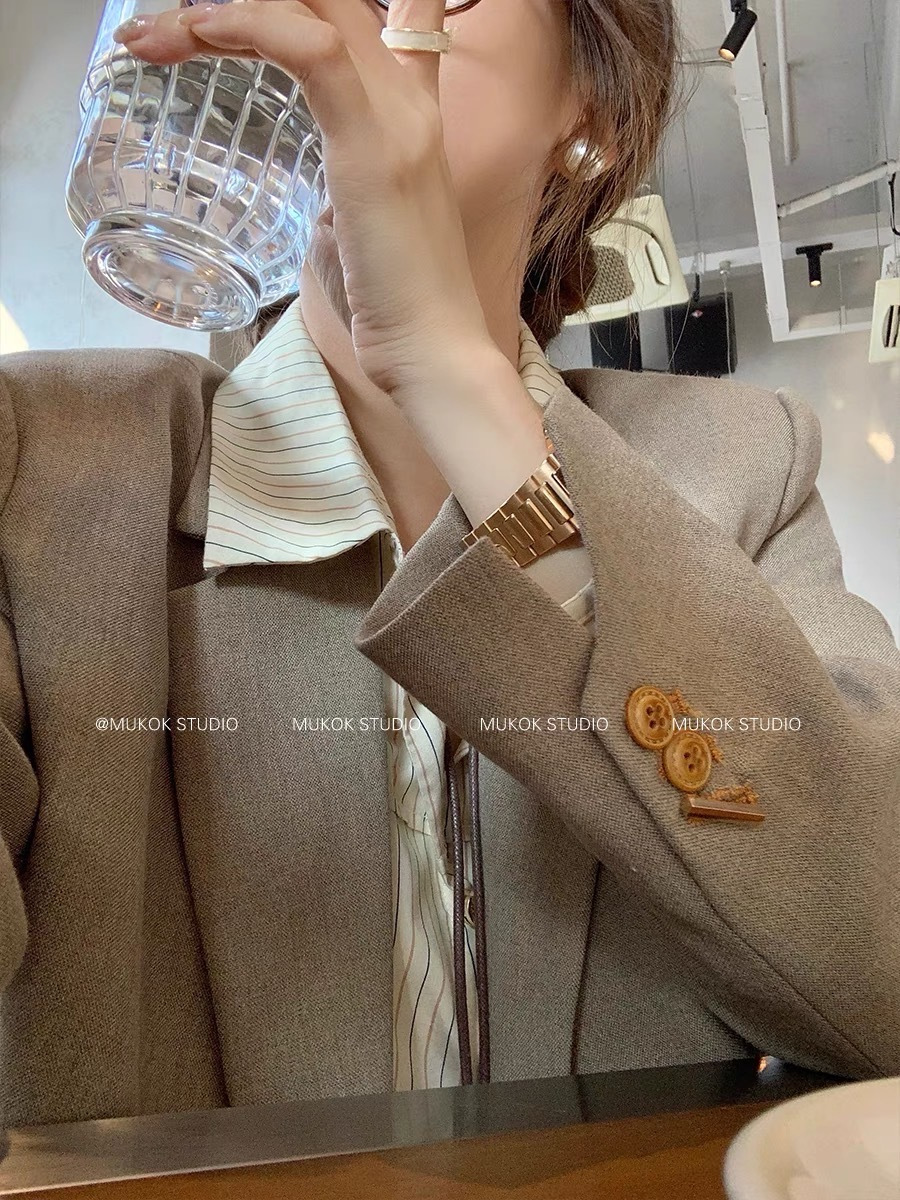 优雅时髦兼备休闲通勤款西装,成稳的颜色搭配不成稳纽扣设计立体剪裁塑造自然建筑线条感。