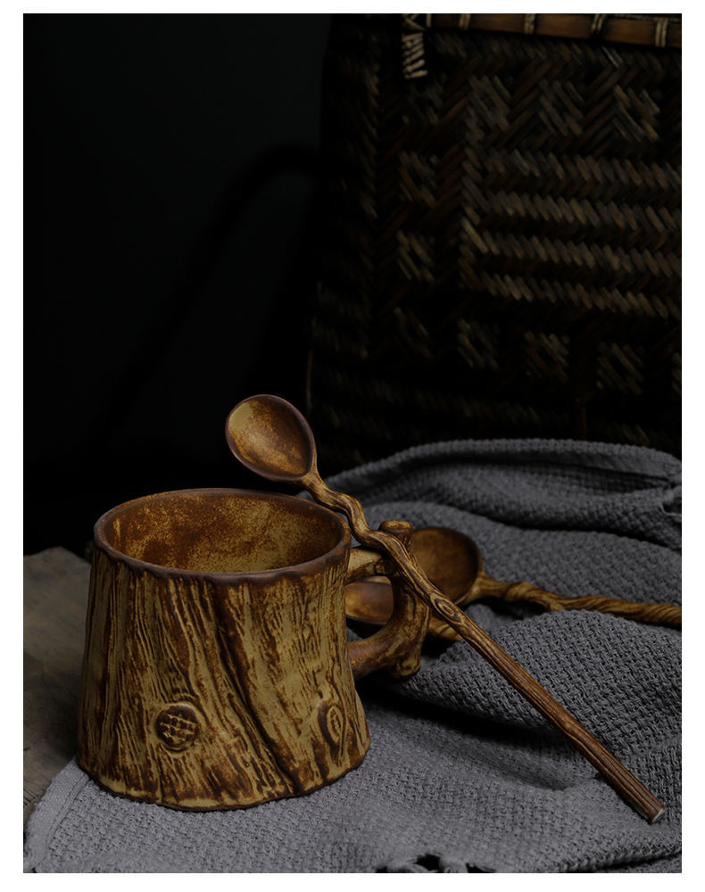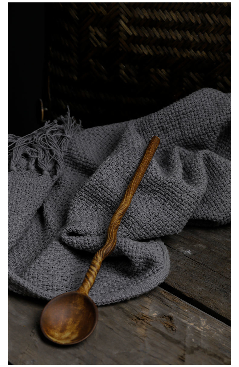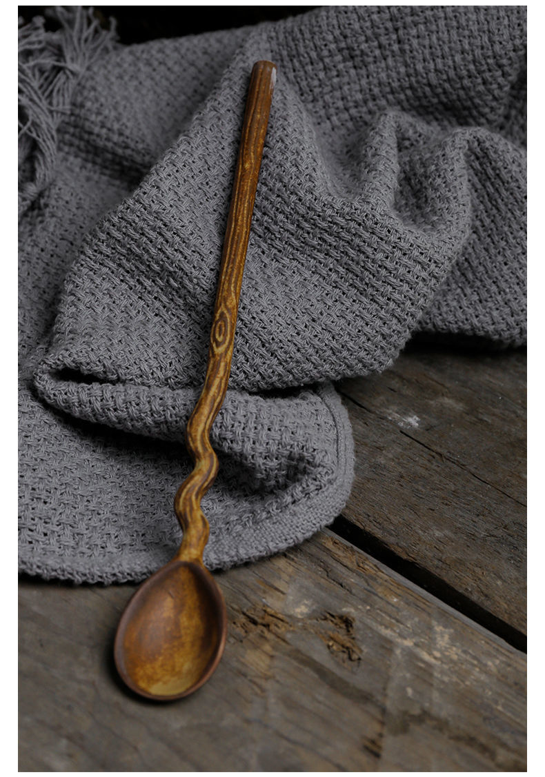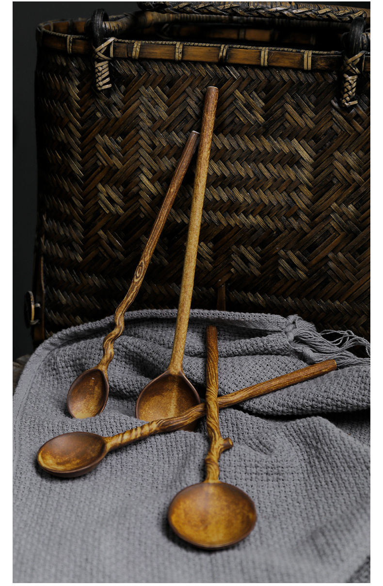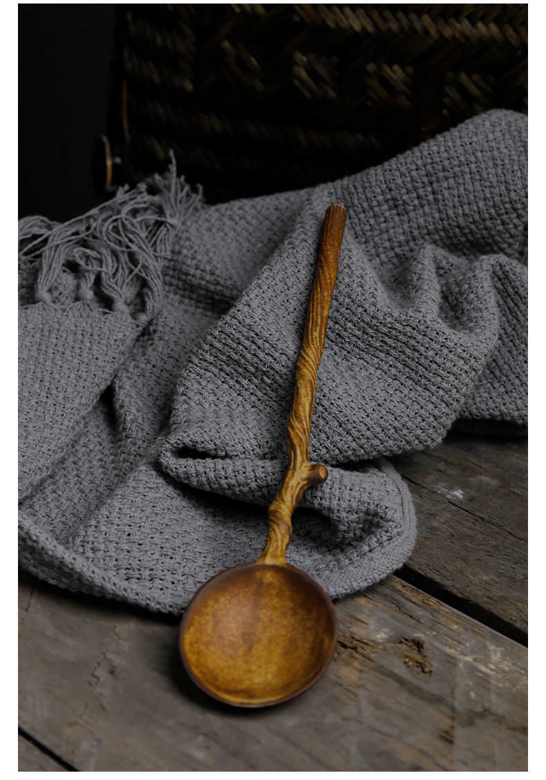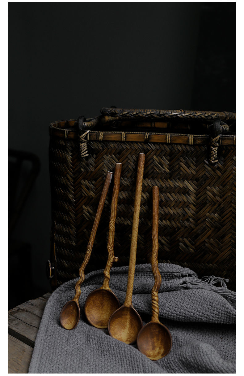 树藤自然文艺勺 陶瓷复古家用长柄勺子咖啡勺创意可爱粗陶搅拌勺吃饭勺手工勺