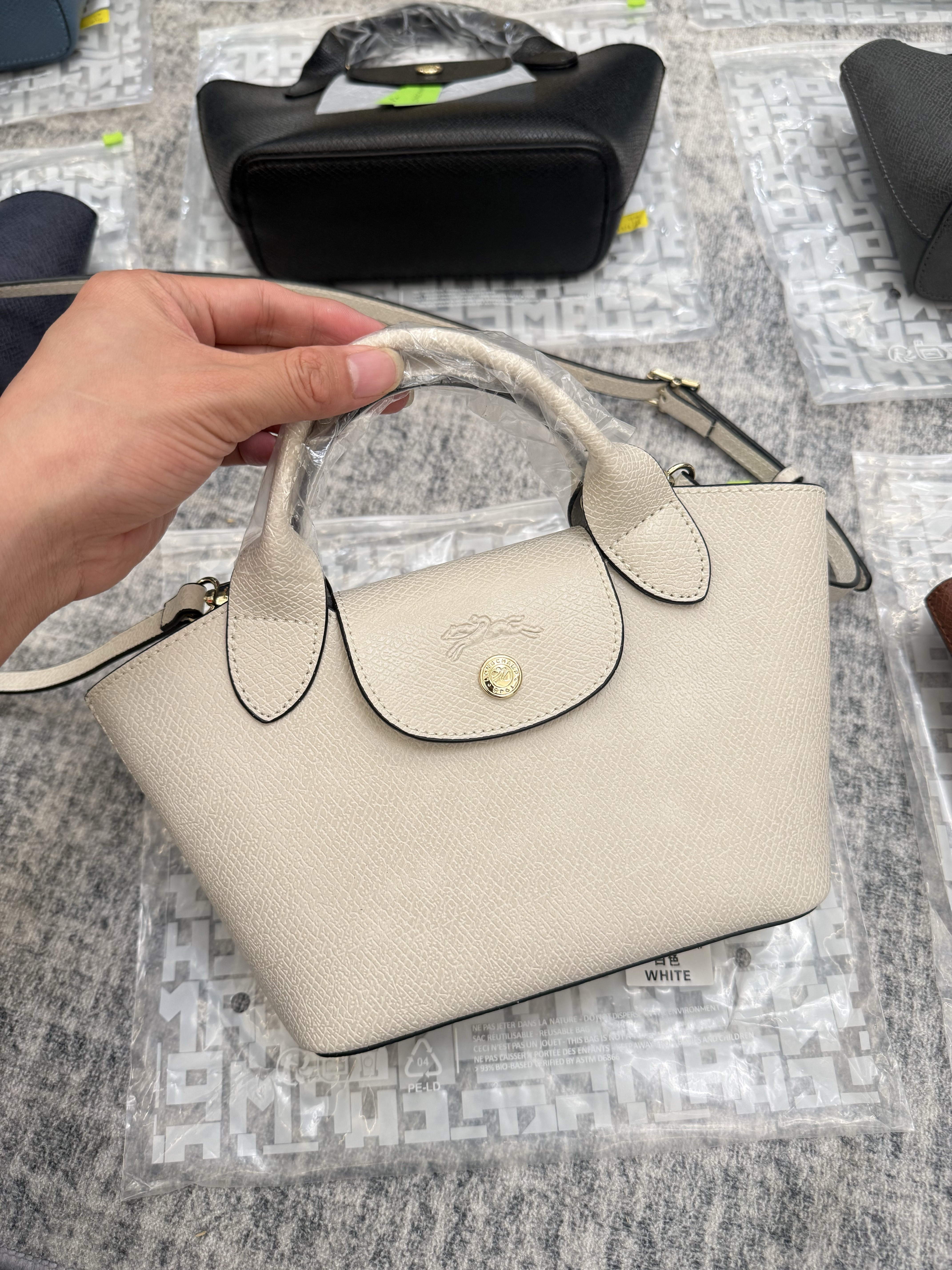 一包难求的款式,现在市面上很难拿的到货,是做出口的货,全部是品牌的原皮料,全部有带条码的,这个是进国外专柜的货!