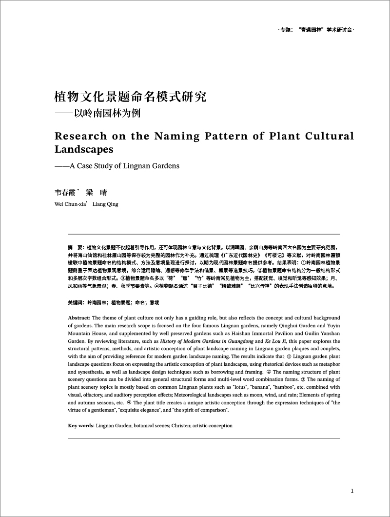 植物文化景题命名模式研究——以岭南园林为例 / 韦春霞* 梁 晴