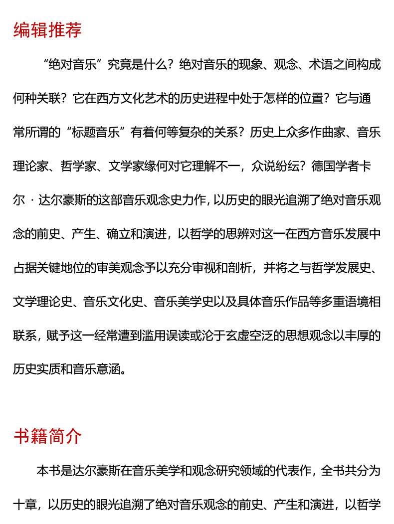 绝对音乐观念 六点音乐译丛 西方音乐发展 杨燕迪达尔豪斯代表作
