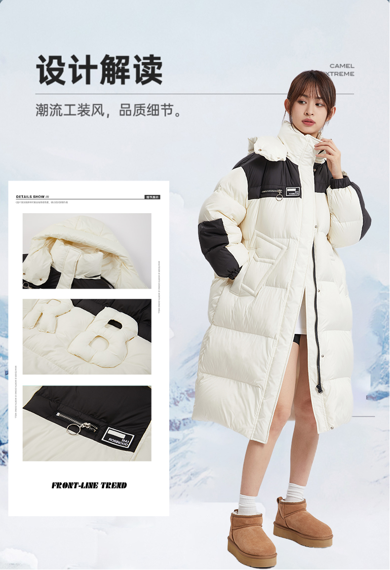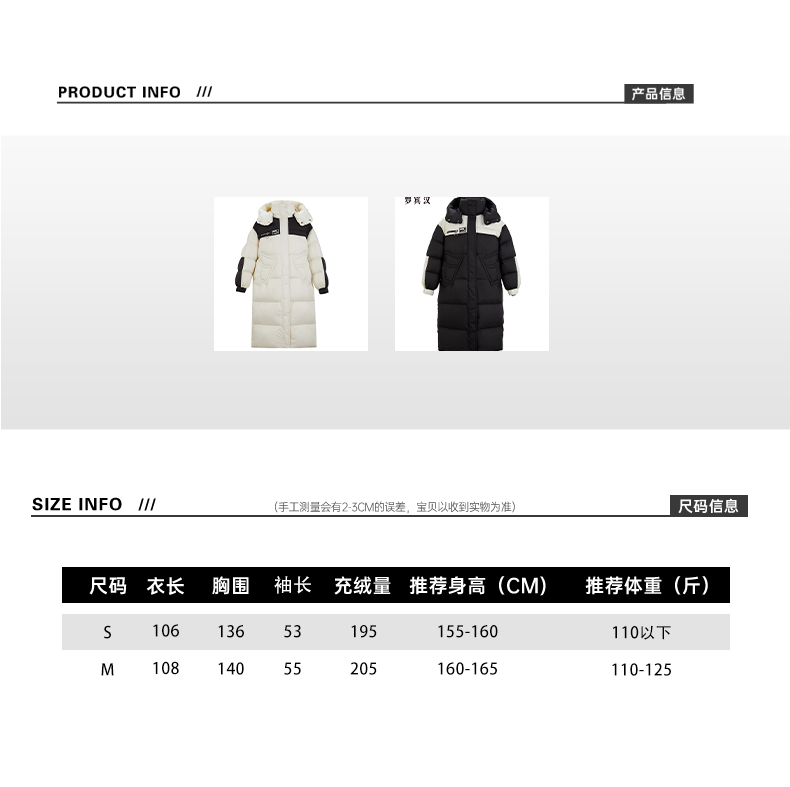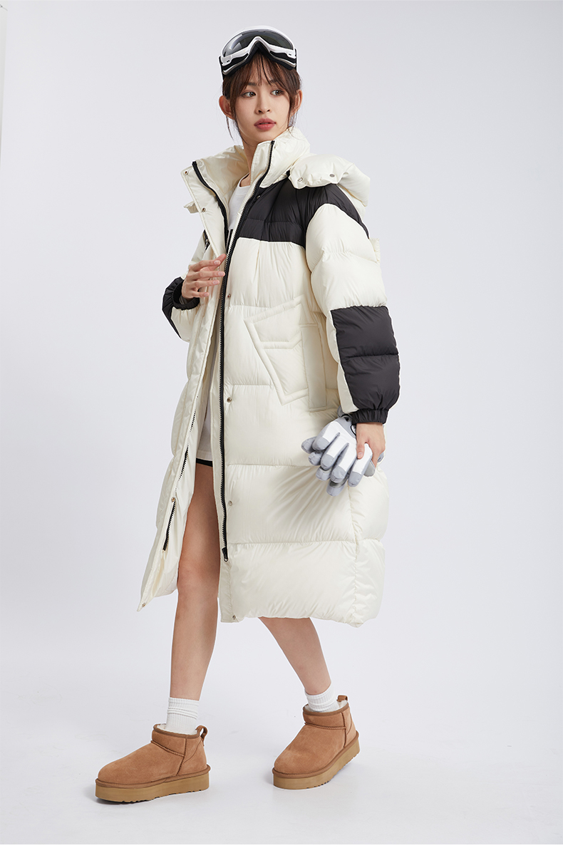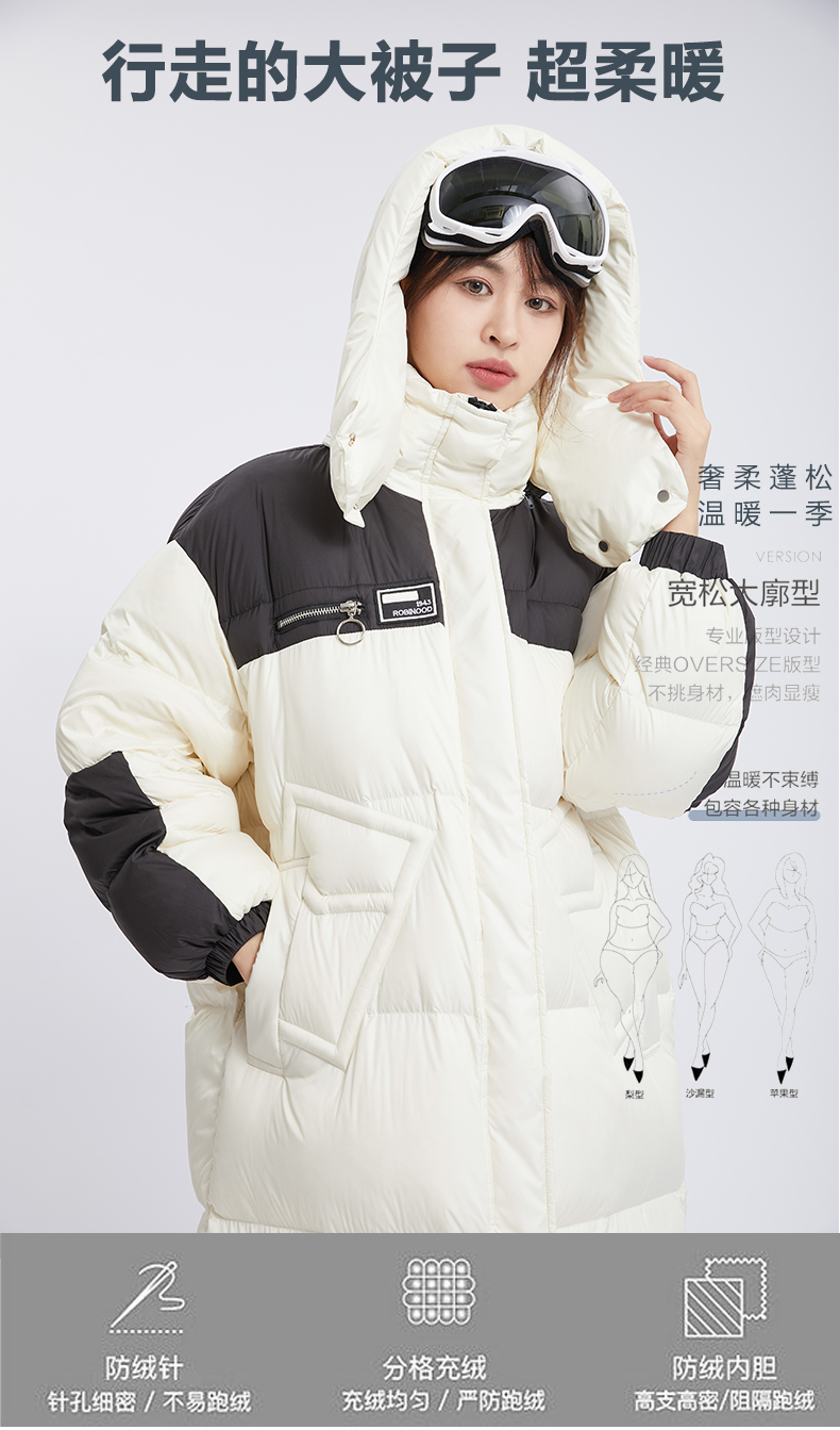 ROBINHOOD撞色拼接长款羽绒服时尚百搭H版型显瘦-R238Y6964(黑色)