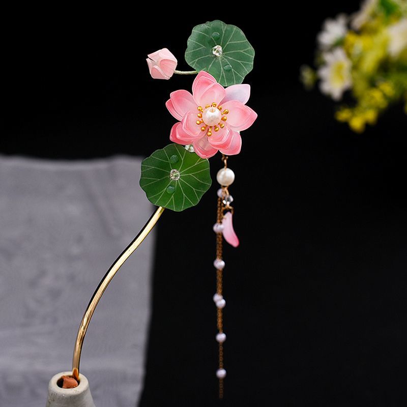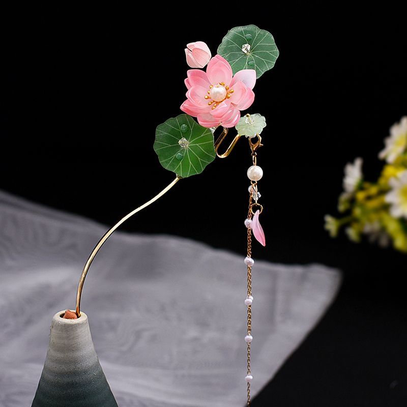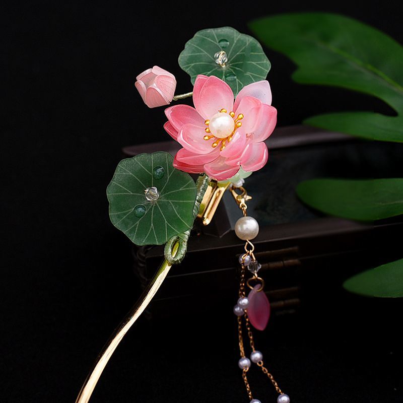 新中式古风旗袍琉璃荷花流苏步摇发簪精致超仙气质日常百搭发簪