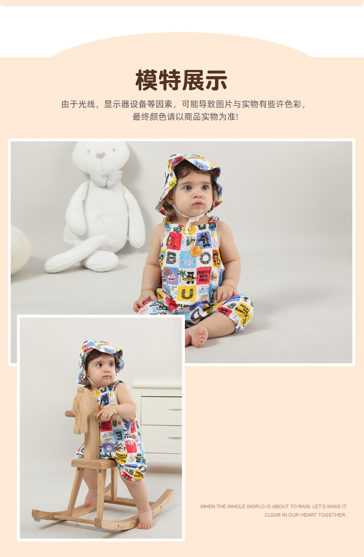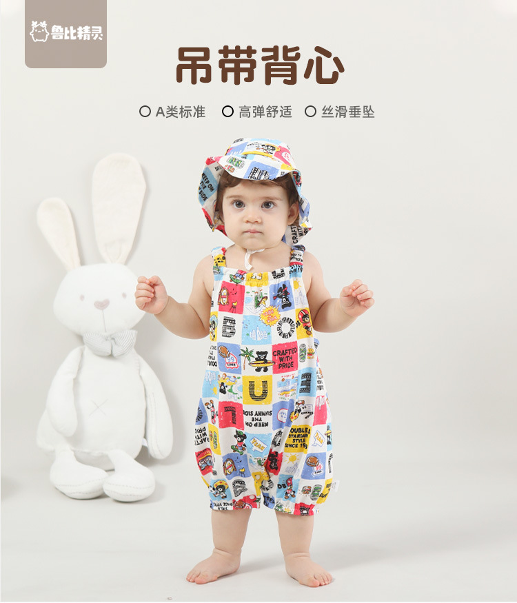 【送同款帽子】男女宝宝夏装吊带包屁衣哈衣婴儿连体衣薄款印花新生儿无袖背心