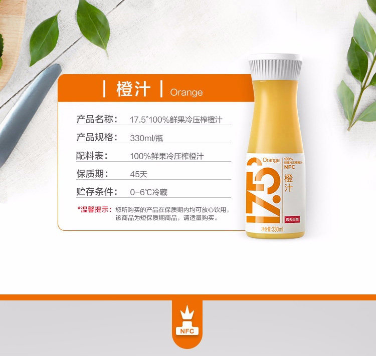 (百万补贴) 农夫山泉17.5NFC果汁330ml