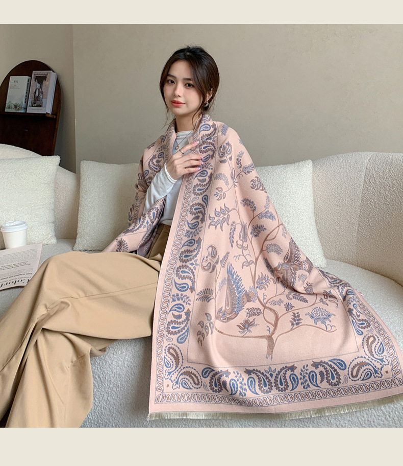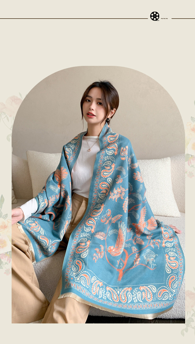 【刘亦菲同款披巾】空调房披肩双面双色围巾短流苏长款百搭贵气优雅