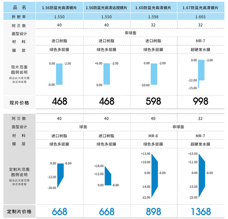1.56高清防蓝光 现片(近视片)-限医院专供(普通包装)
