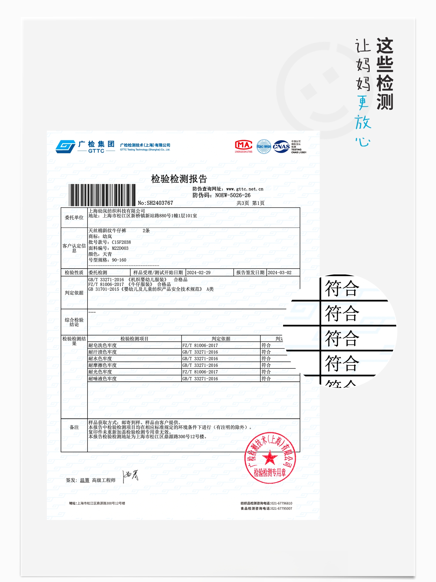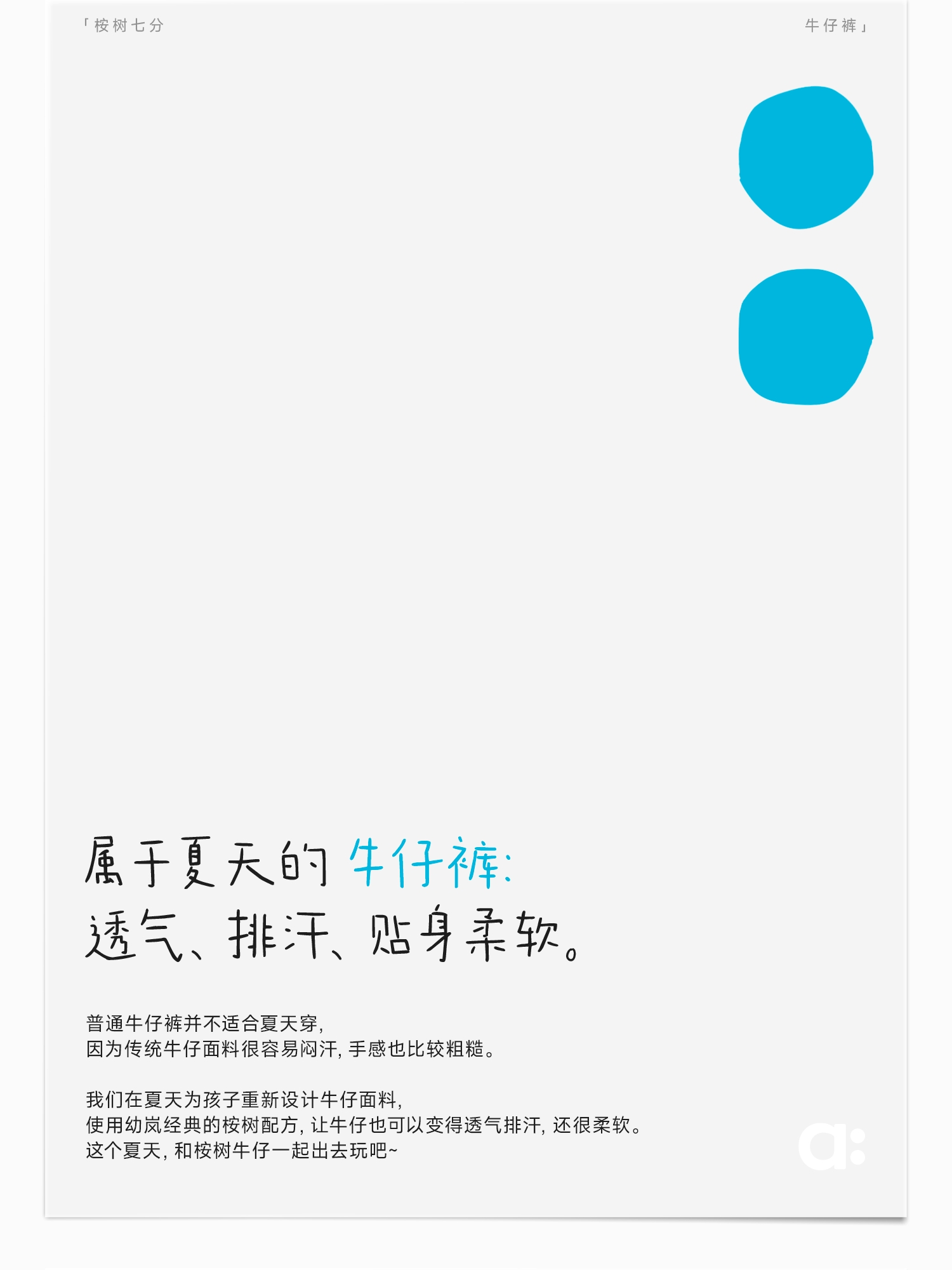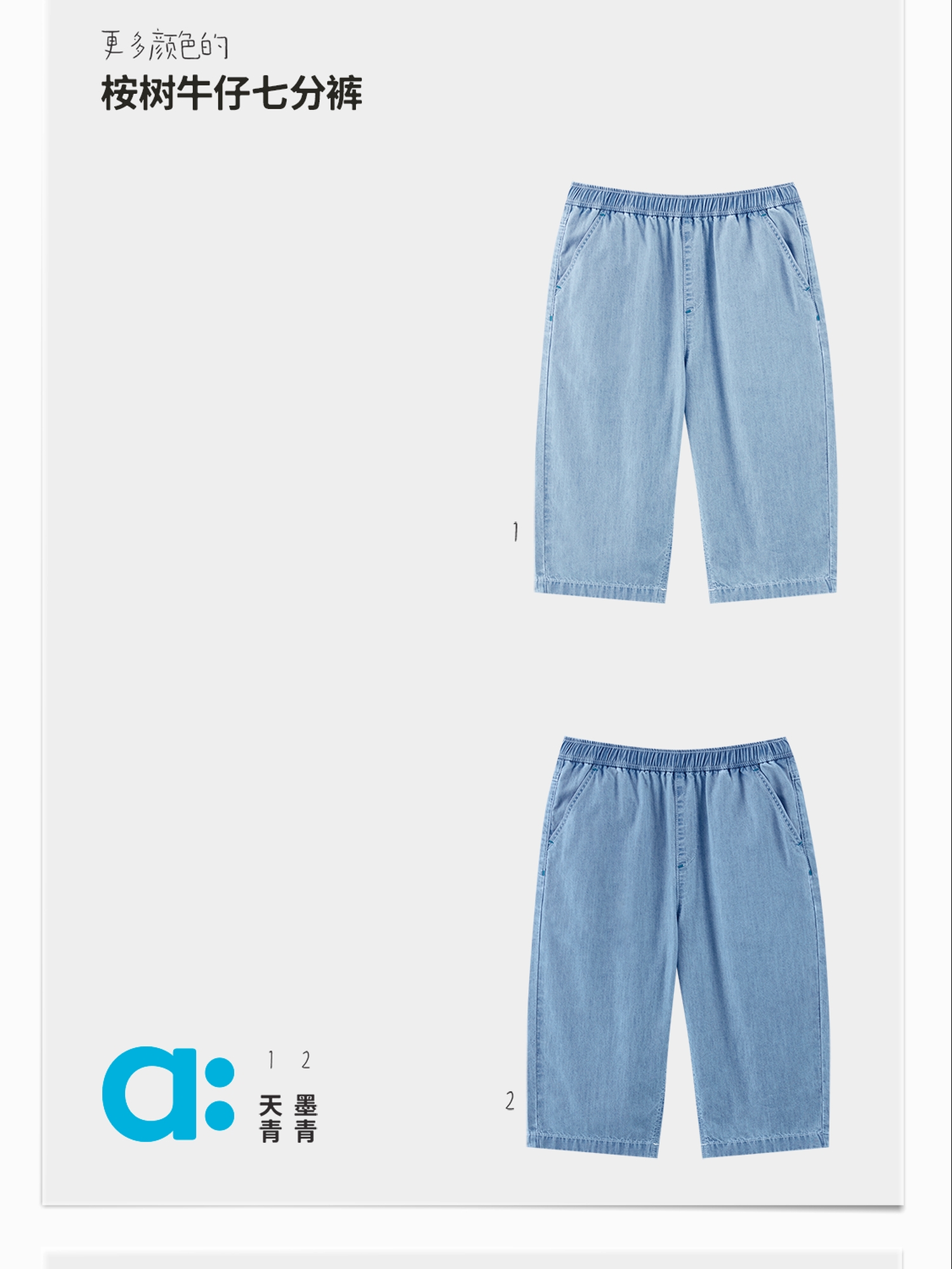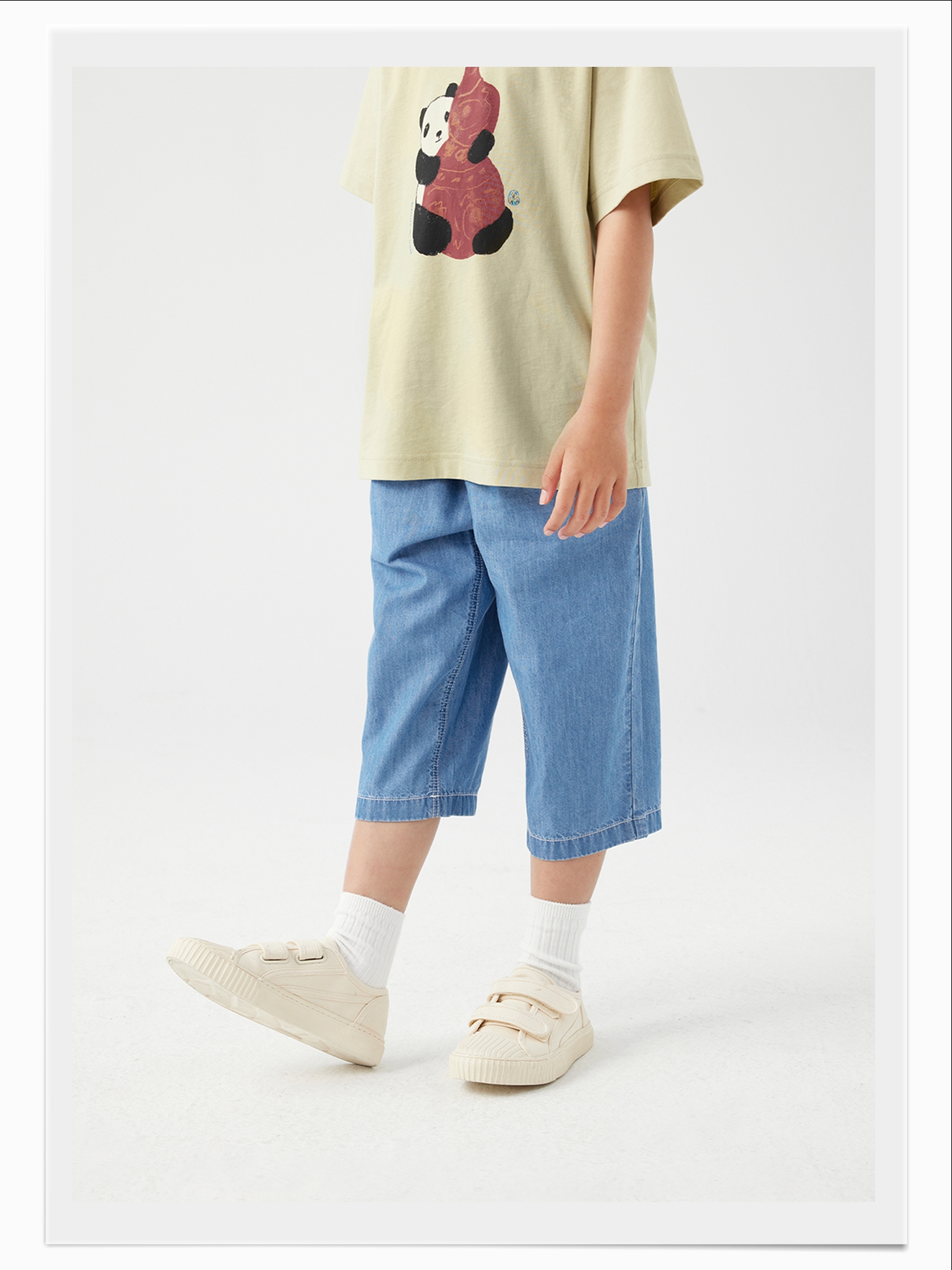 【好友特惠】幼岚「王牌桉树皮」牛仔七分裤透气排汗24夏儿童柔软贴身易打理牛仔裤ZY