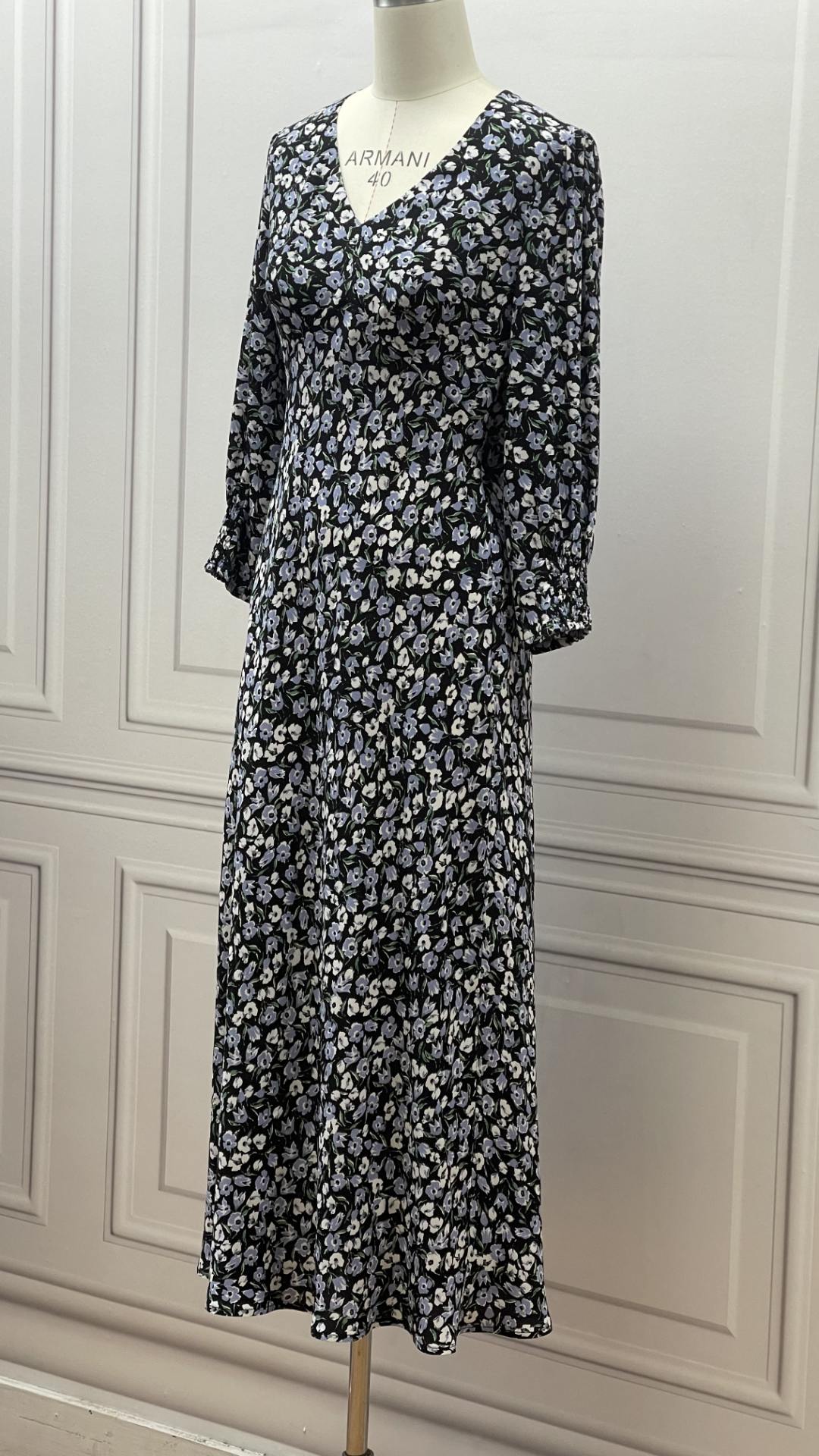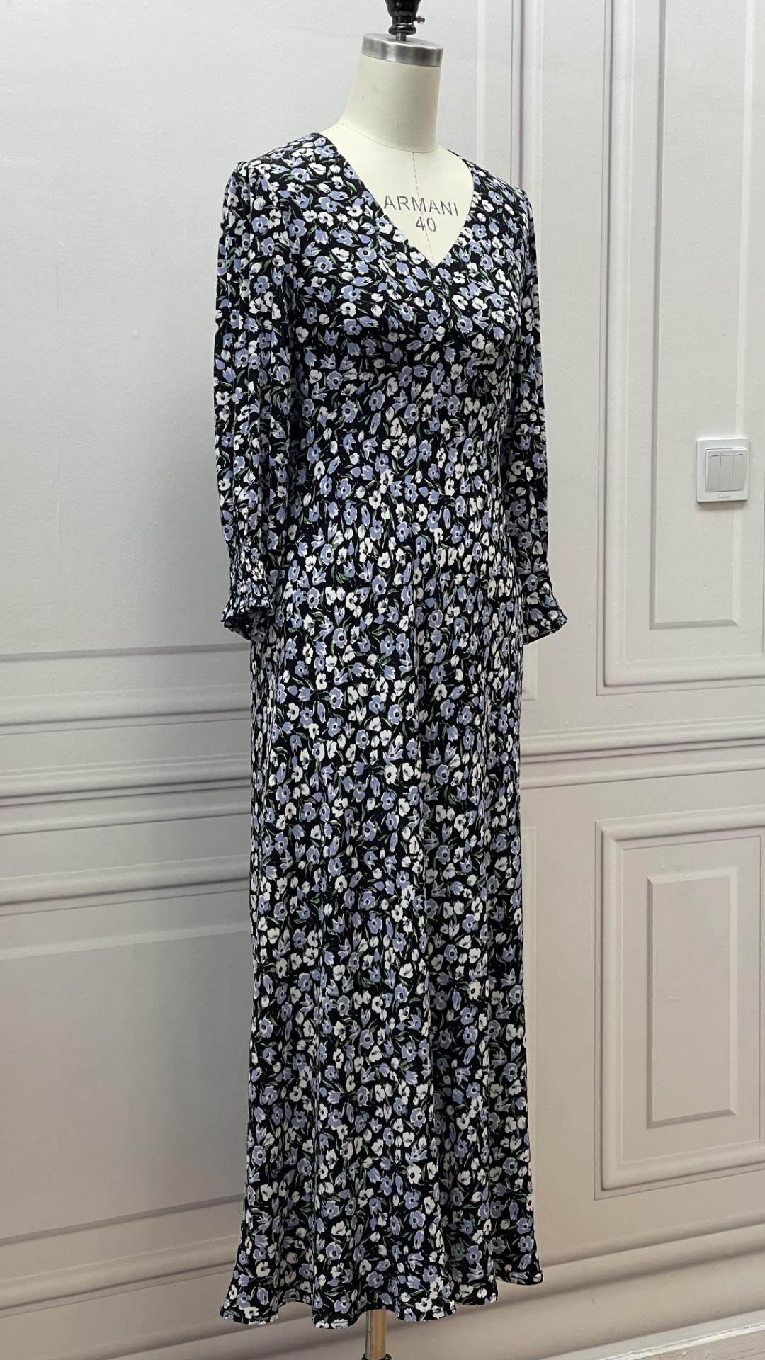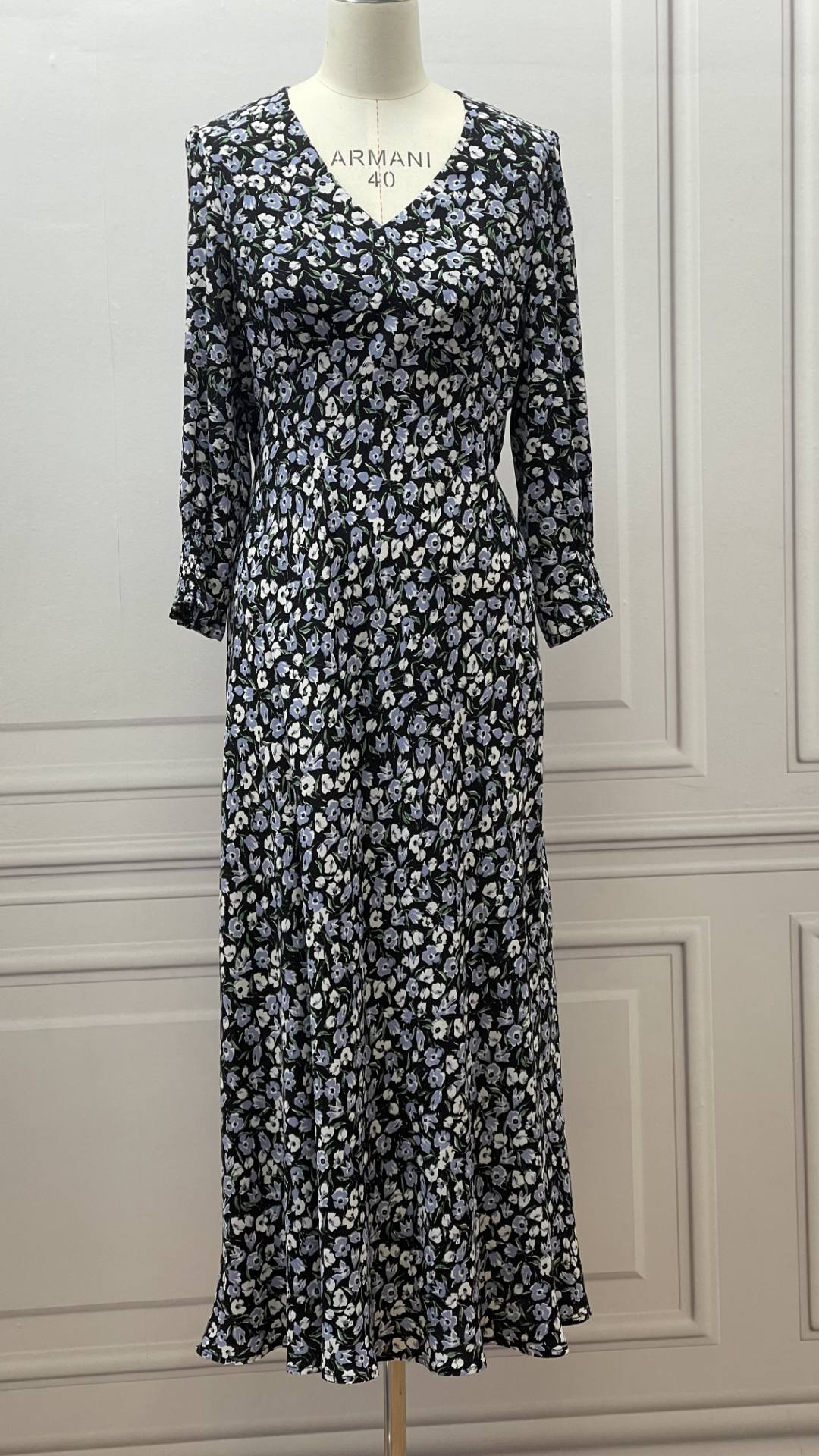 定制—浪漫复古风—植物印花连衣裙法式春天仙女裙 2201025