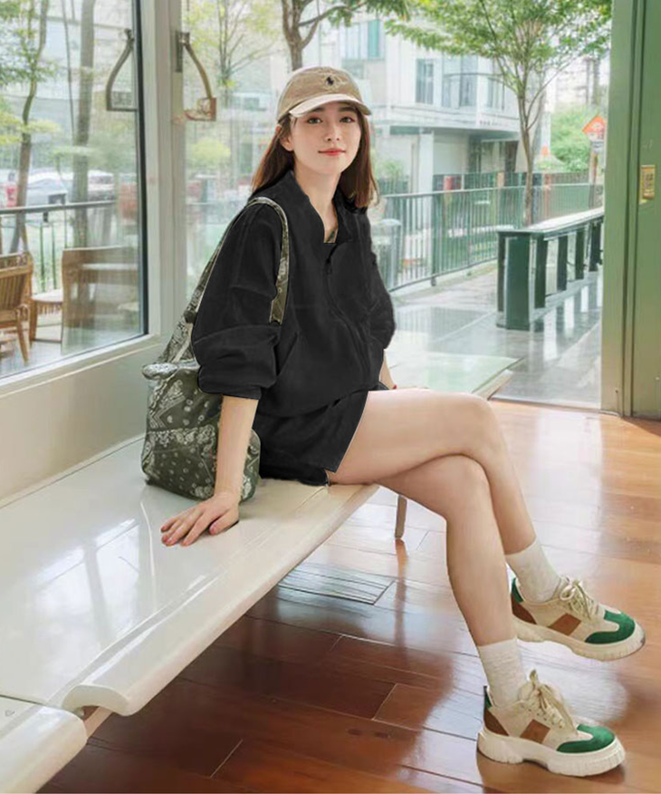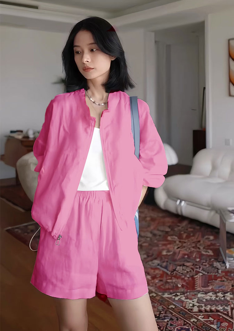 套装一:休闲亚麻夹克短裤套装