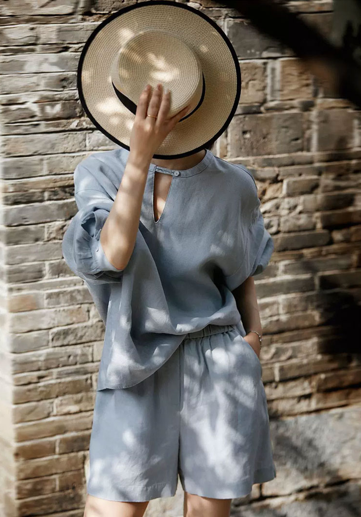 你可以和亚麻短裤一套入,完全不用烦恼搭配的问题,也可以单件入上装或者下装。