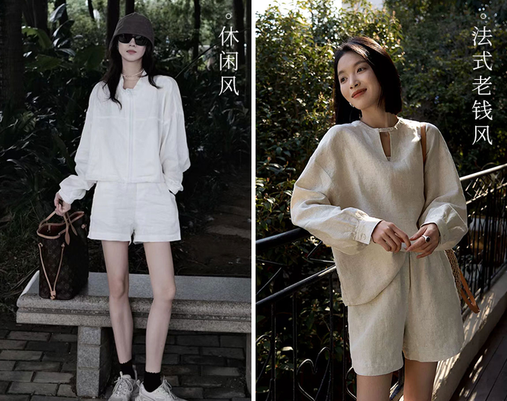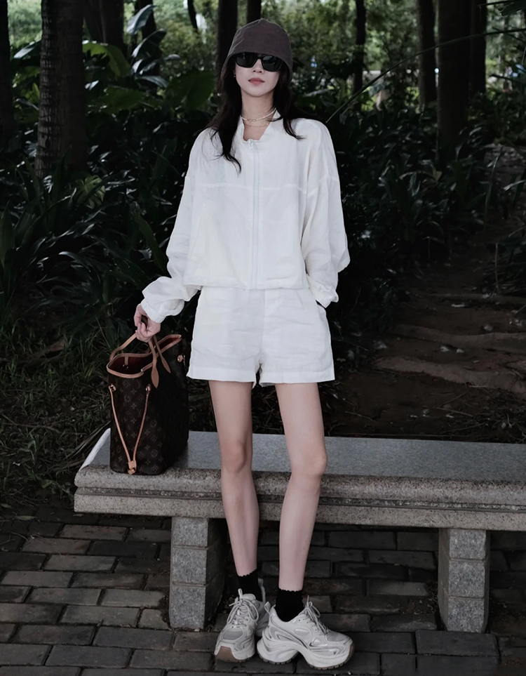 如果你不想入一整套,可以只入亚麻夹克或者是短裤,解锁更多随性穿搭。