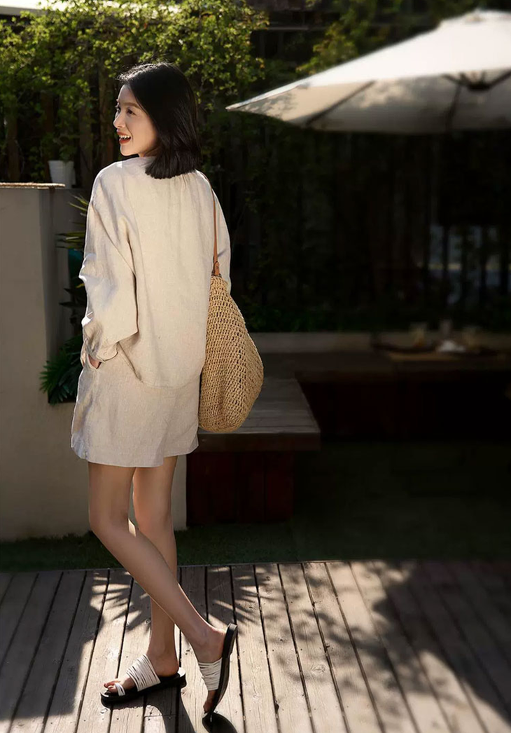 这套真的是亚麻单品的“月光曲”,从春日的阳台、无边的碧海、散漫的自由,透过衣履相互辉映,似乎穿上它,便能获得心安理得的自洽感吧。