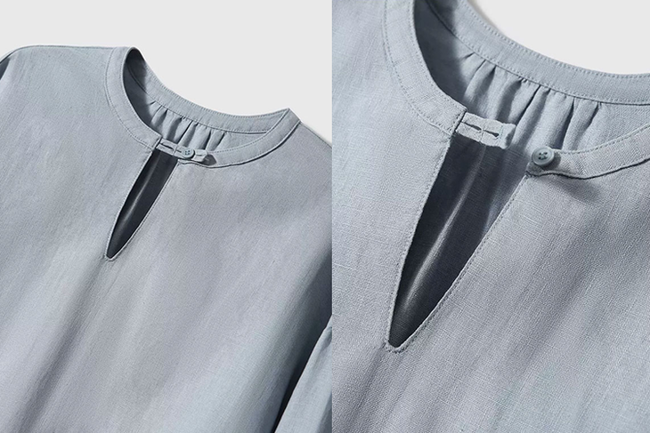面料采用进口法国雨露麻和纯棉混纺。