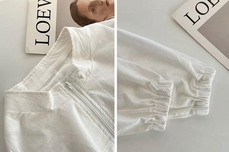 这款将上衣设计成哈灵顿夹克款的亚麻衫,真的是市面少见的设计款式。