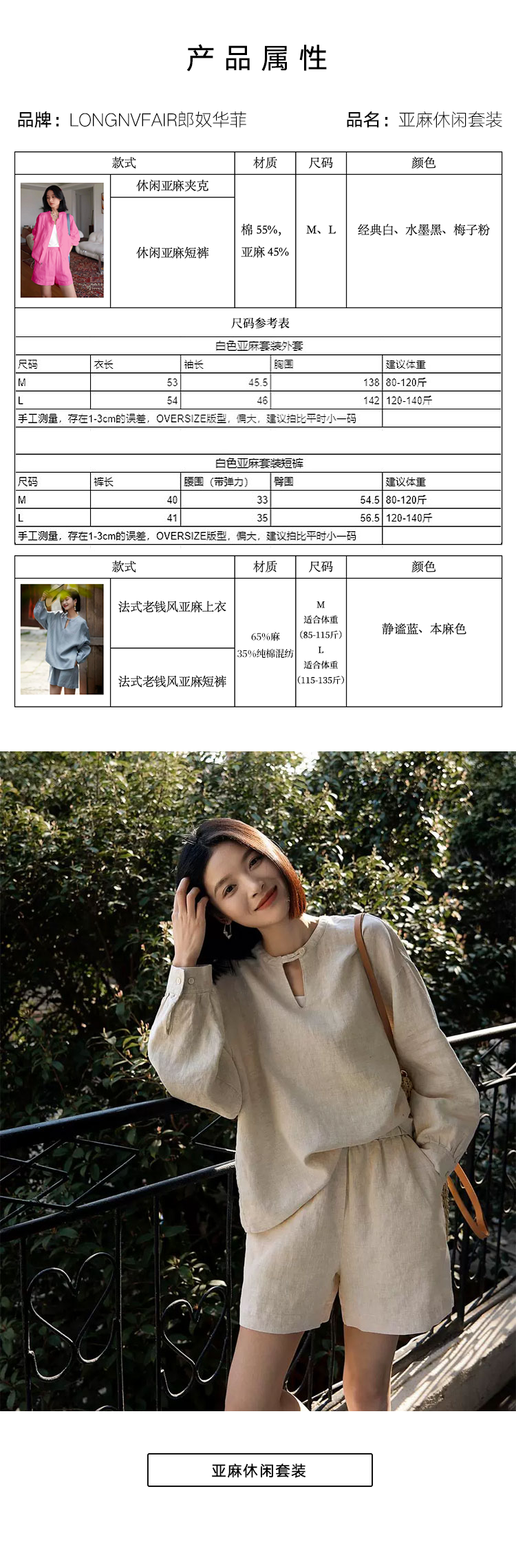 所以今天就给大家带来两套,从春天穿到夏天的、超有质感的亚麻休闲套装——LONGNVFAIR郎奴华菲亚麻系列。