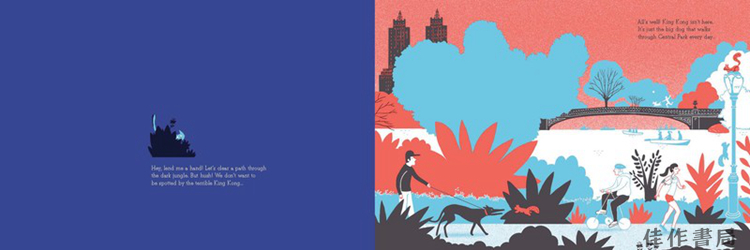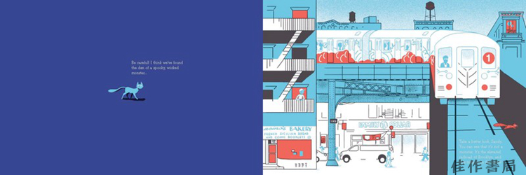 Some of New York’s most familiar sights look very different at night in this highly amusing introduction to the city. Sometimes your eyes can play tricks on you, especially in the dark. This enchanting picture book shows how New York City can look quite peculiar at night. Each brightly colored spread is overlaid with a sheet of translucent blue paper and when lifted, voilà! A space ship and Martian become The Guggenheim, a giant serpent is actually the subway, King Kong’s jungle turns into Central Park, and a superhero takes on the shape of a construction worker. Exhilarating and captivating, all the scenes are easily switched between day and night and will take the reader on a unique journey that lets imaginations run wild while revealing that some things at night aren’t as scary as they seem.