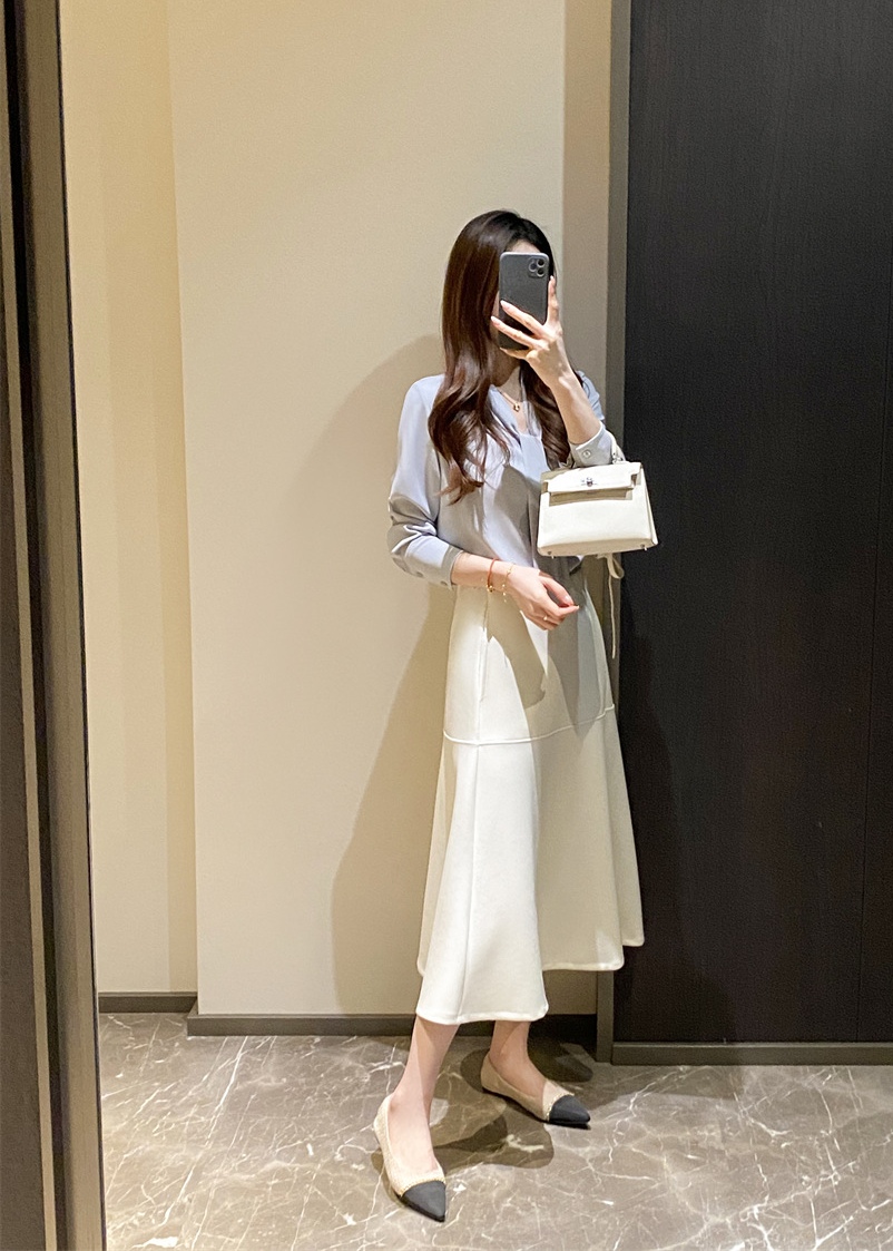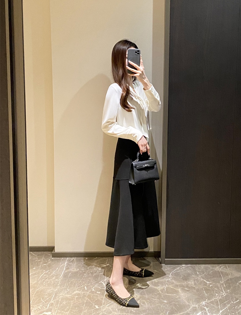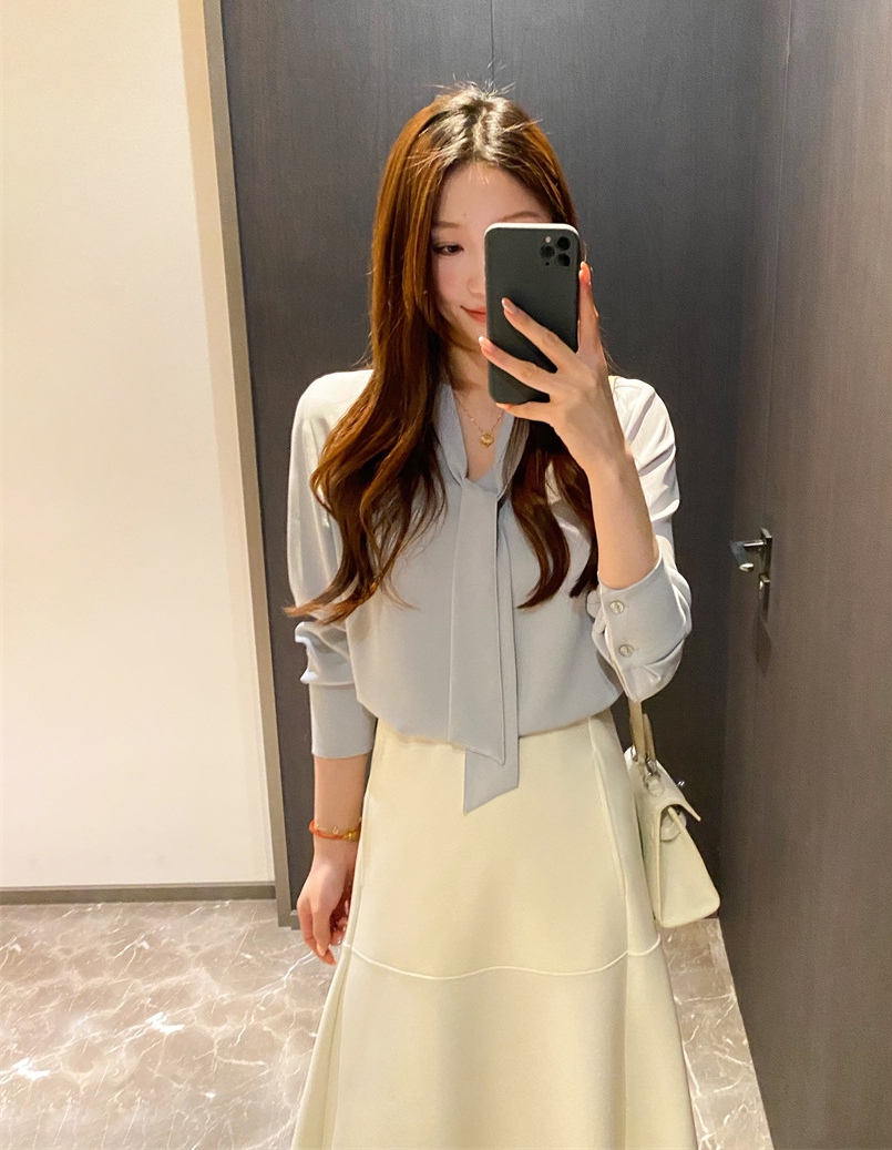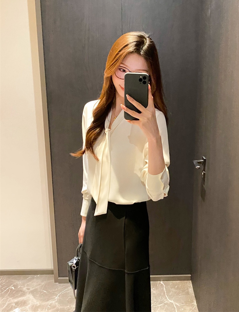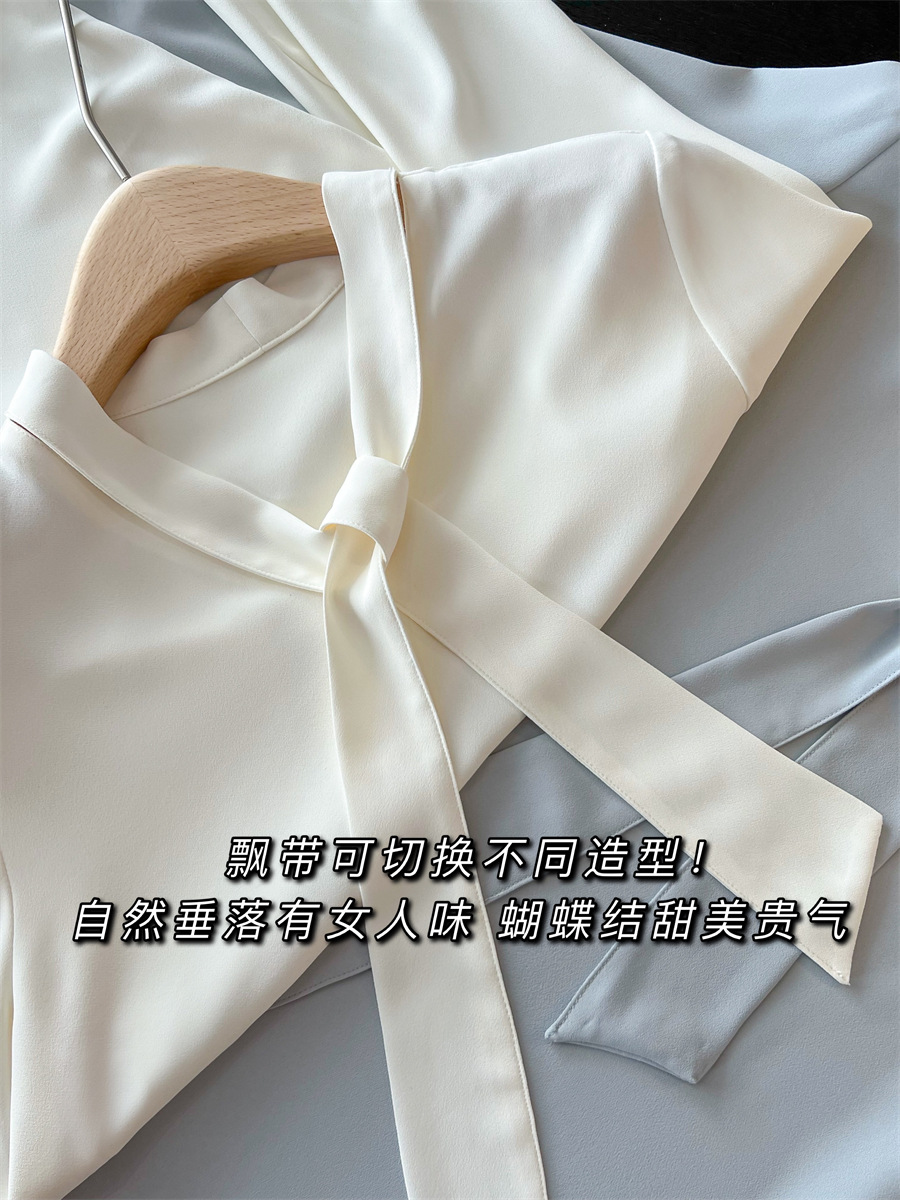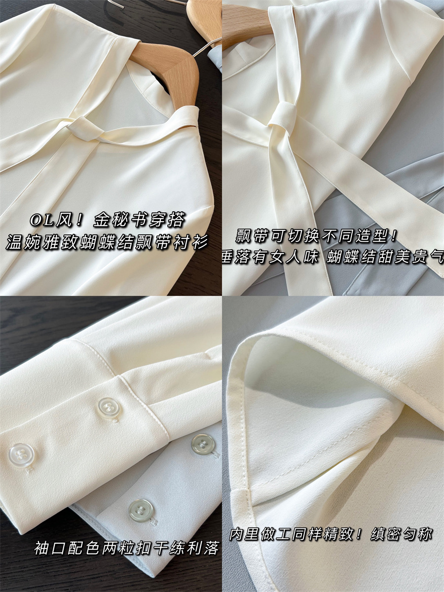 温婉雅致飘带衬衫,通勤休闲都~衬衫的地位一直是“芜人能及”,加捻垂感,有挺度,不易钩纱狠抗皱细腻柔软,挺括立体,舒适肤白色也不会透。