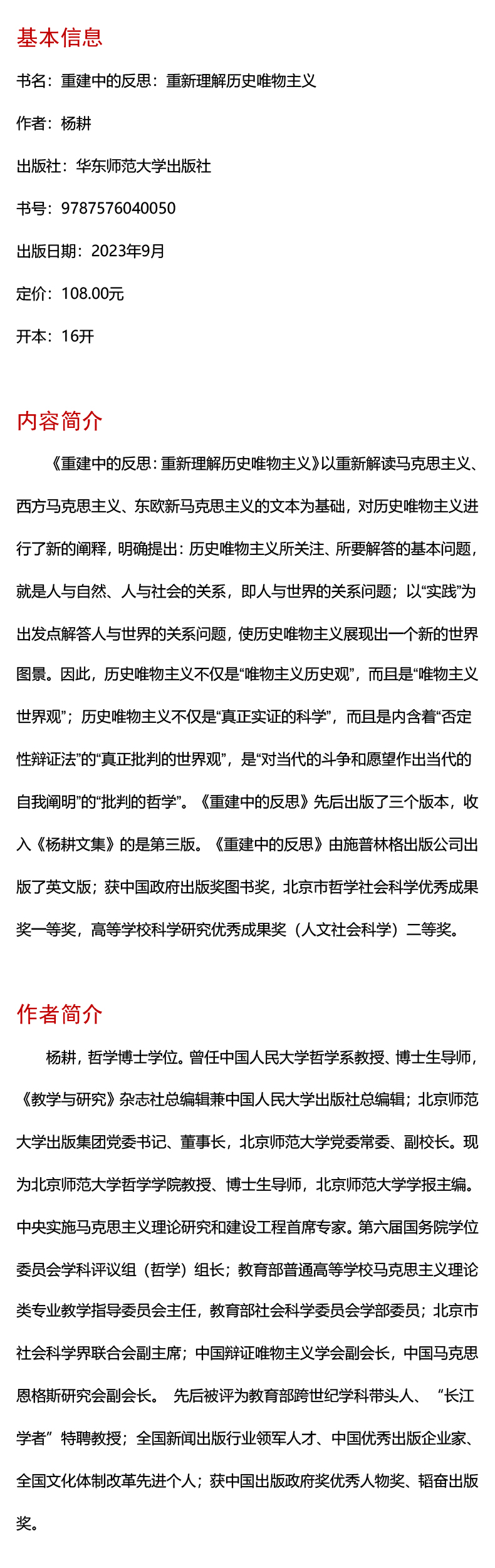 重建中的反思 重新理解历史唯物主义 杨耕文集 第4卷 解读马克思主义