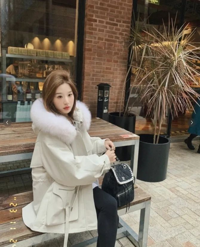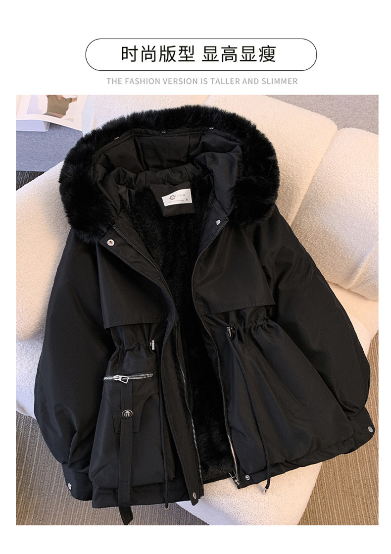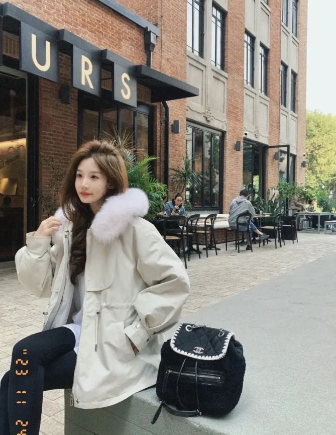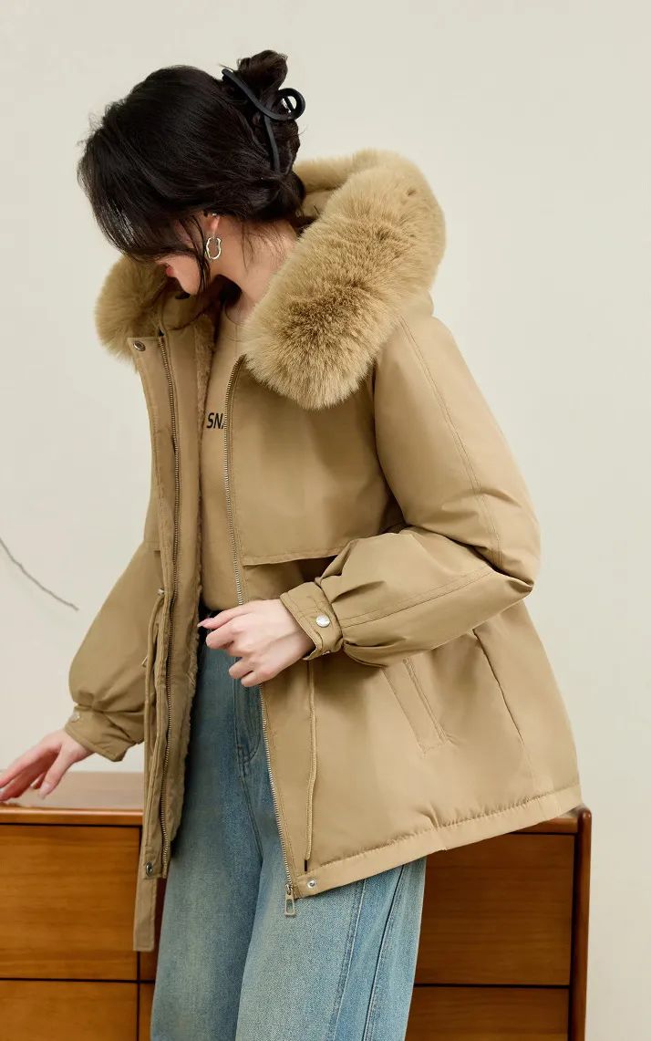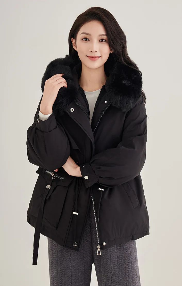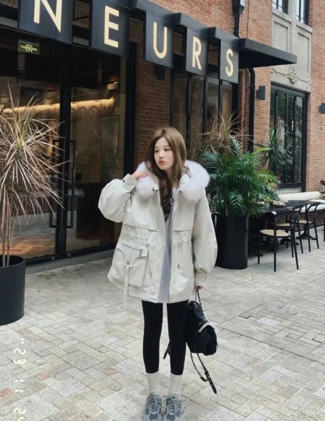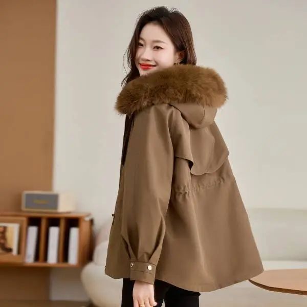 万人迷大毛领加厚派克服 收腰显瘦 加绒加厚 皮毛一体外套女 可拆卸内胆