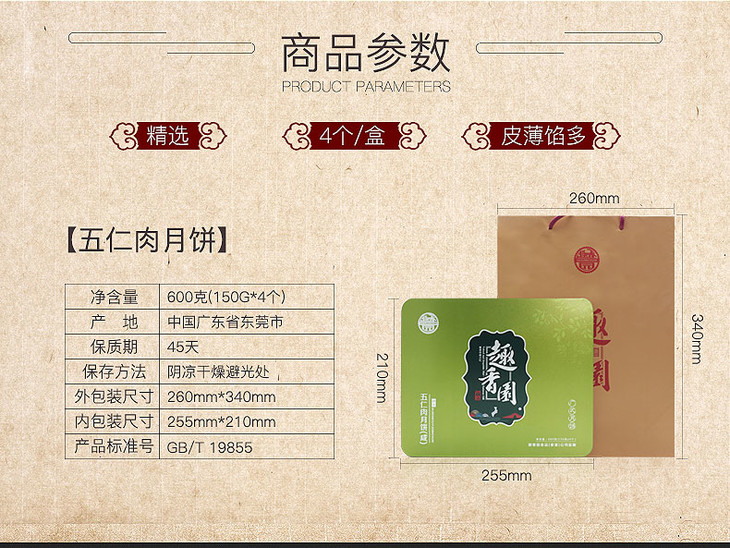 精品伍仁月饼礼盒装750g(4个)传统伍仁月饼 全国包邮