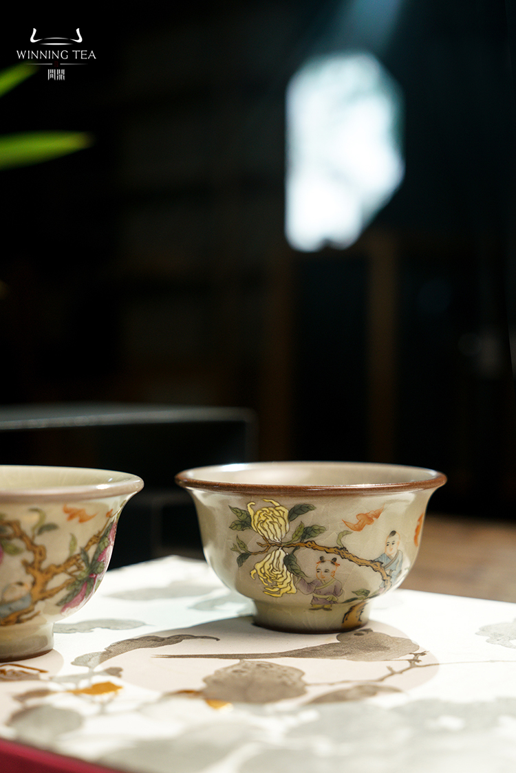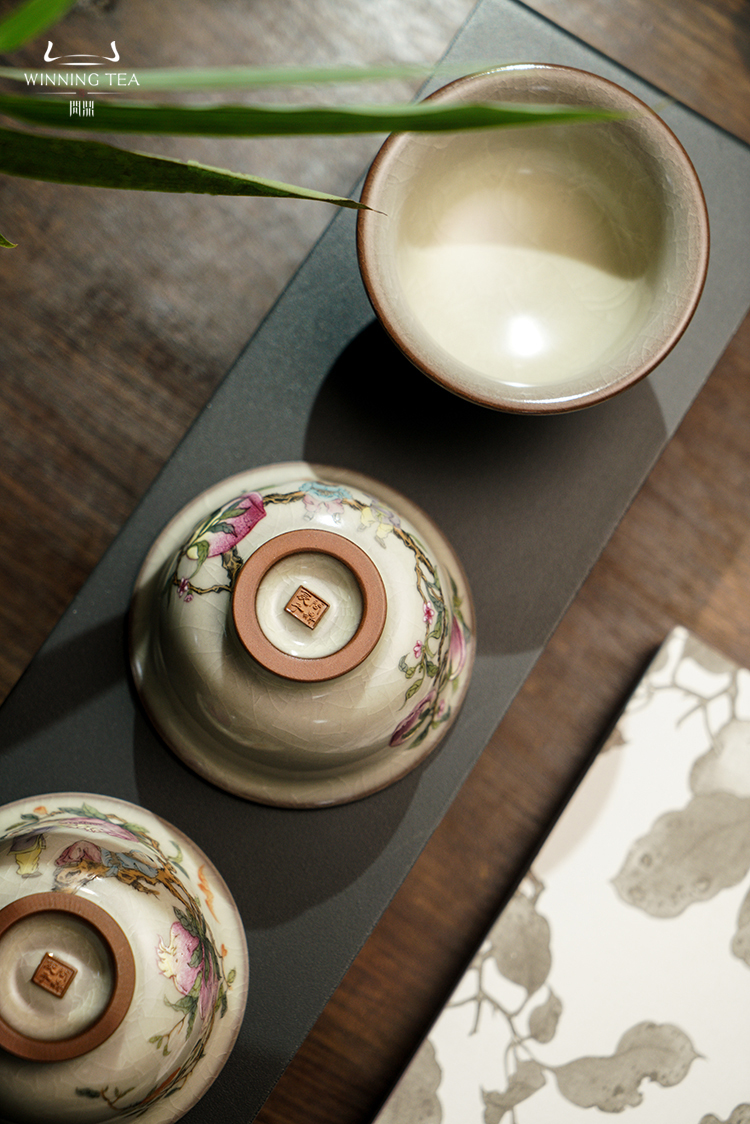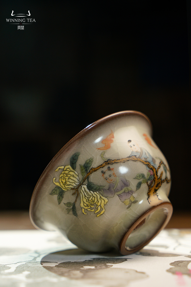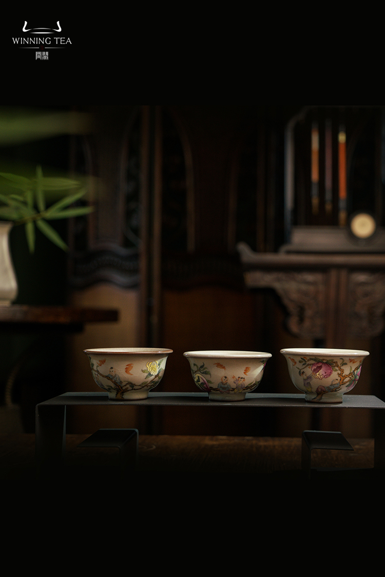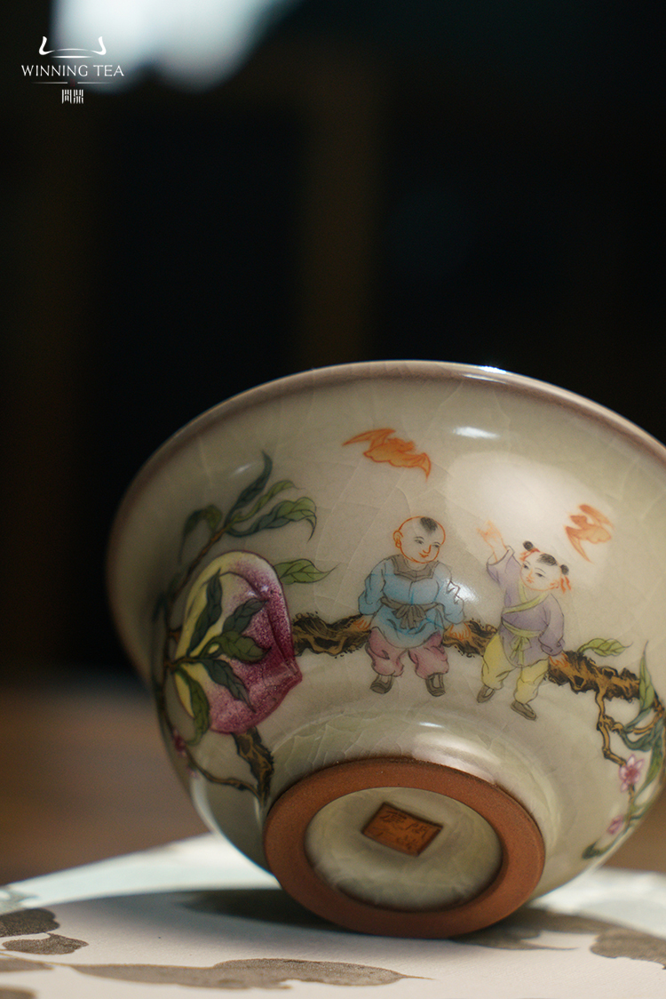 问鼎哥窑压手杯(多子多福)(福寿康宁)(福寿双全)