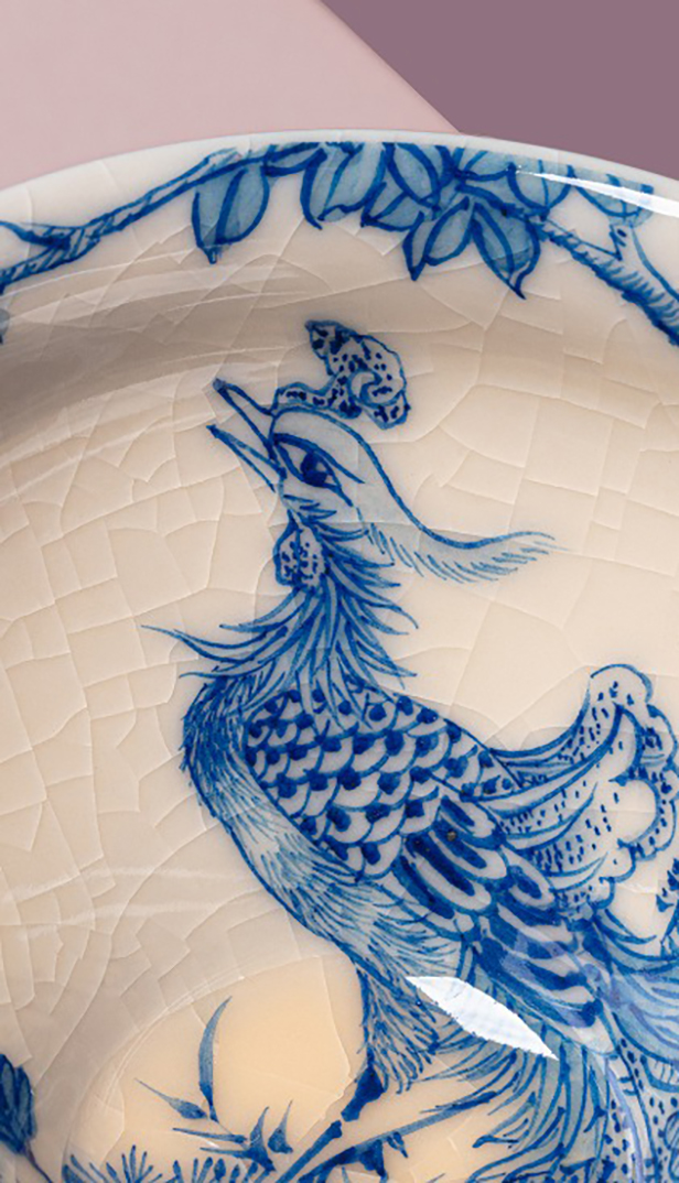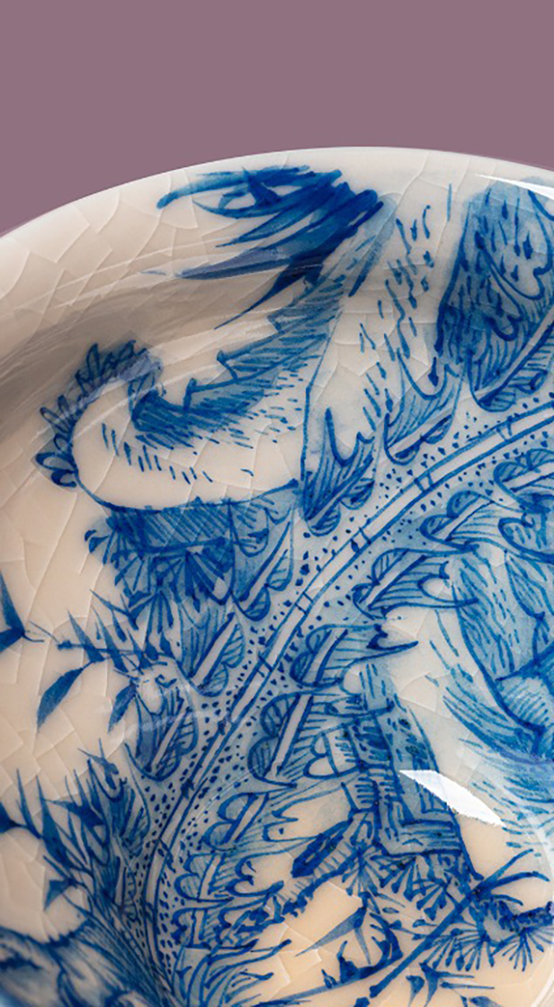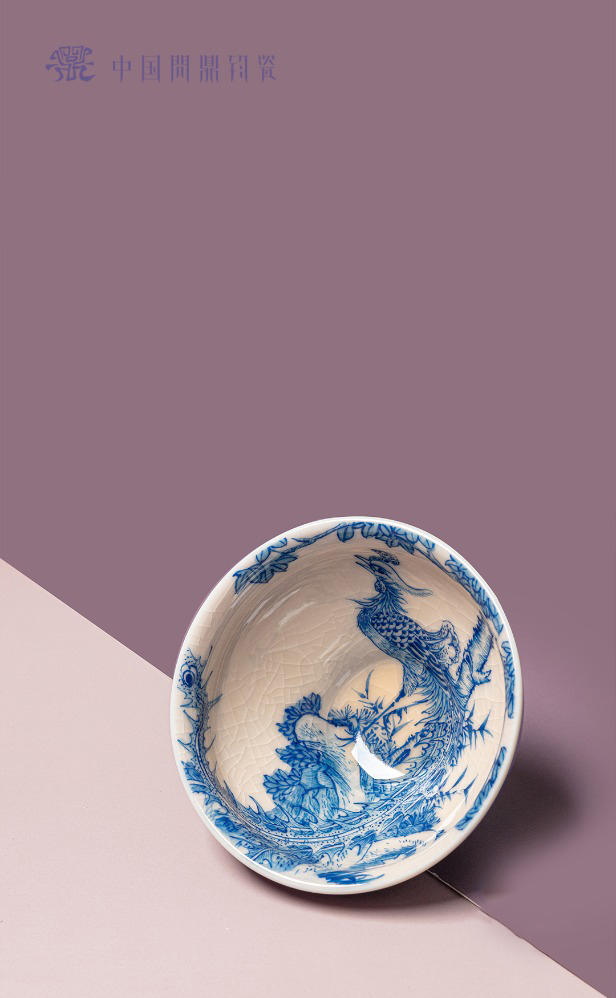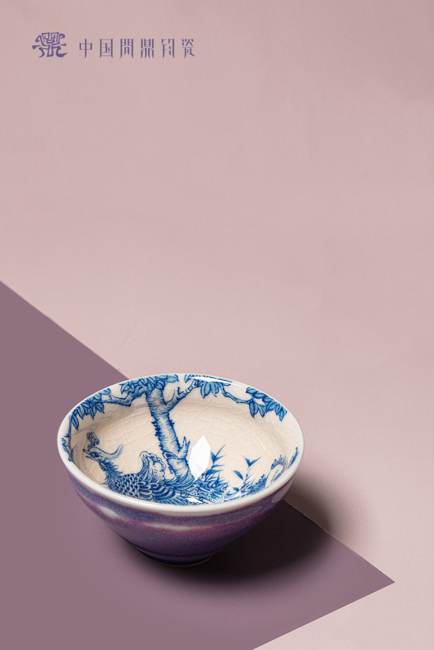 问鼎钧瓷鹅黄青花宋盏杯(凤凰栖梧)