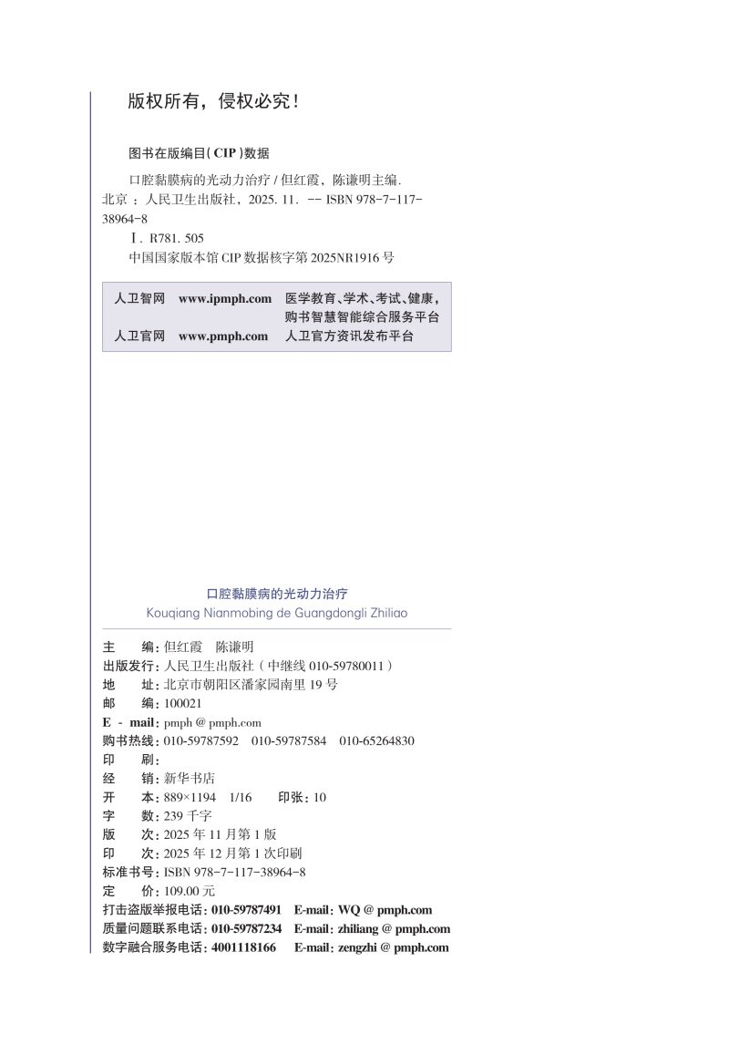 书名:口腔黏膜病的光动力治疗