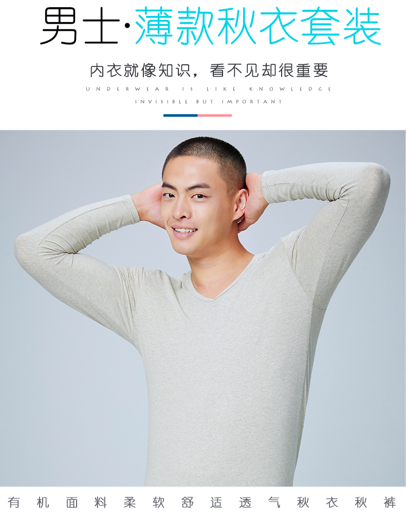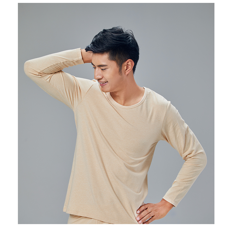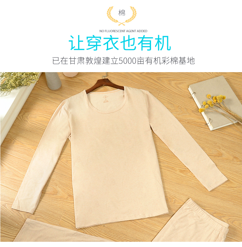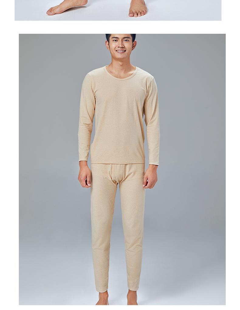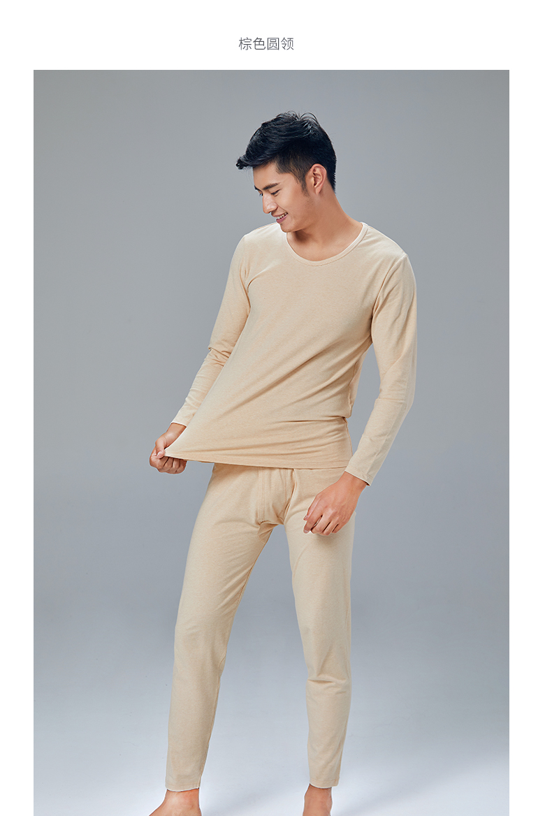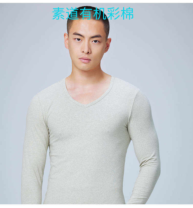 素道天然有机彩棉 男士薄款长袖套装 圆领打底秋衣秋裤 秋冬保暖