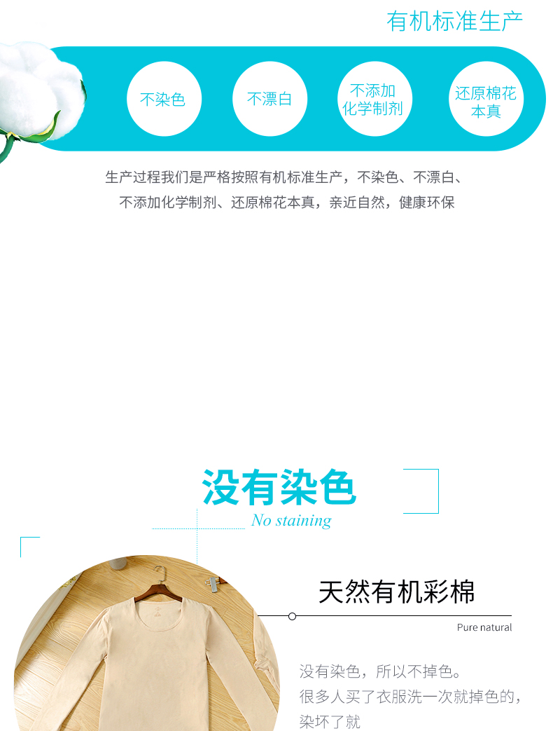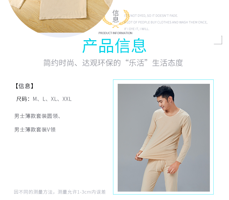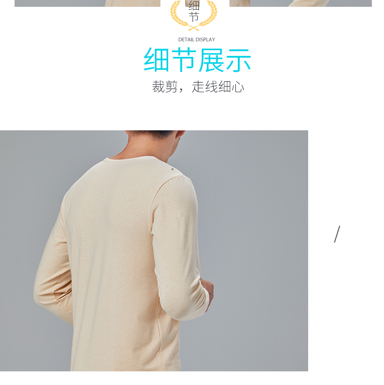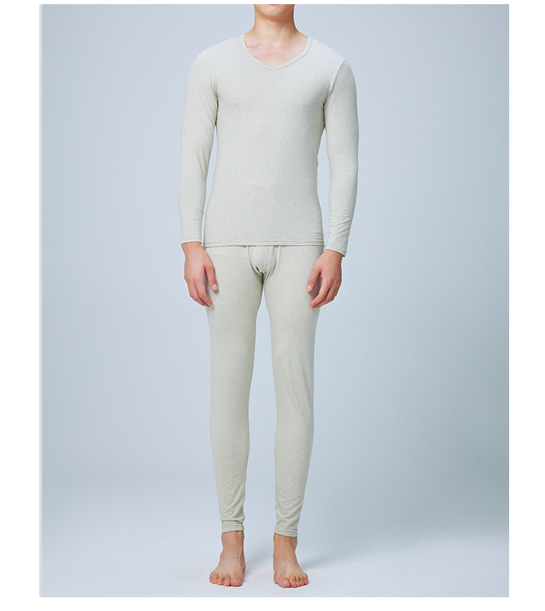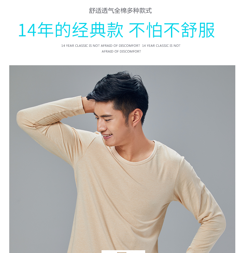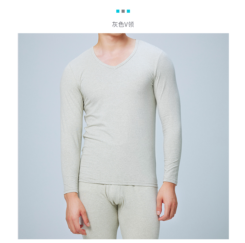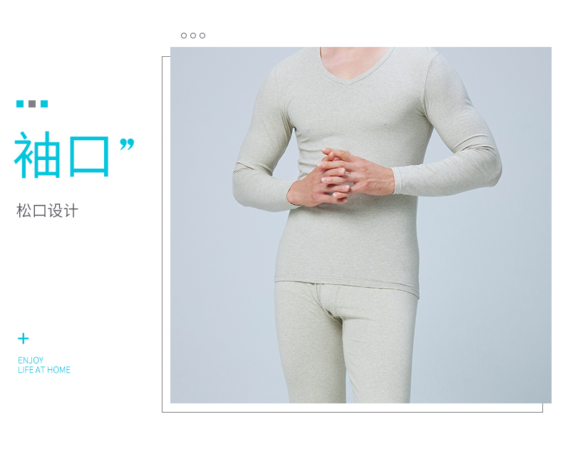 素道天然有机彩棉 男士薄款长袖套装 圆领打底秋衣秋裤 秋冬保暖