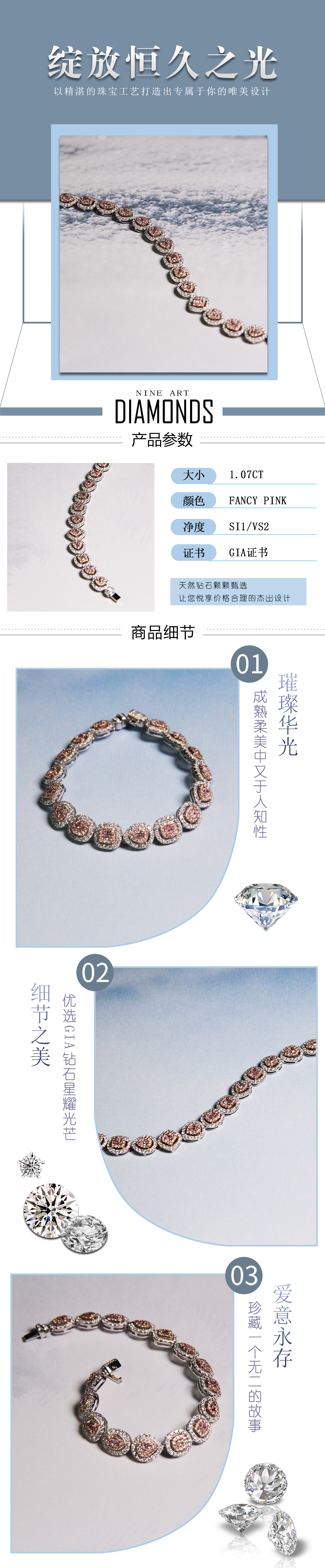 天然粉钻手链