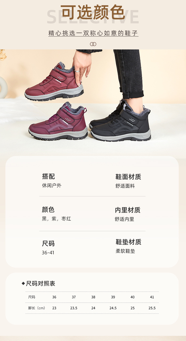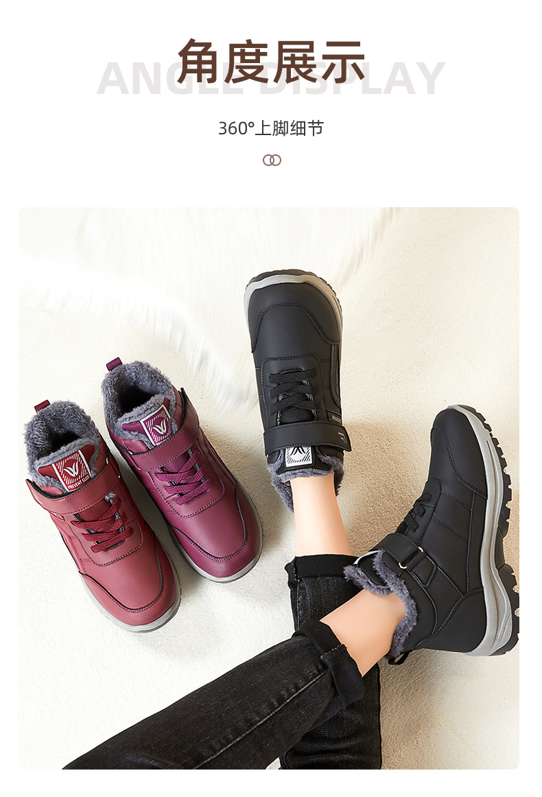 雪地靴女冬季新款棉鞋妈妈鞋魔术贴大码加绒加厚情侣健步棉靴