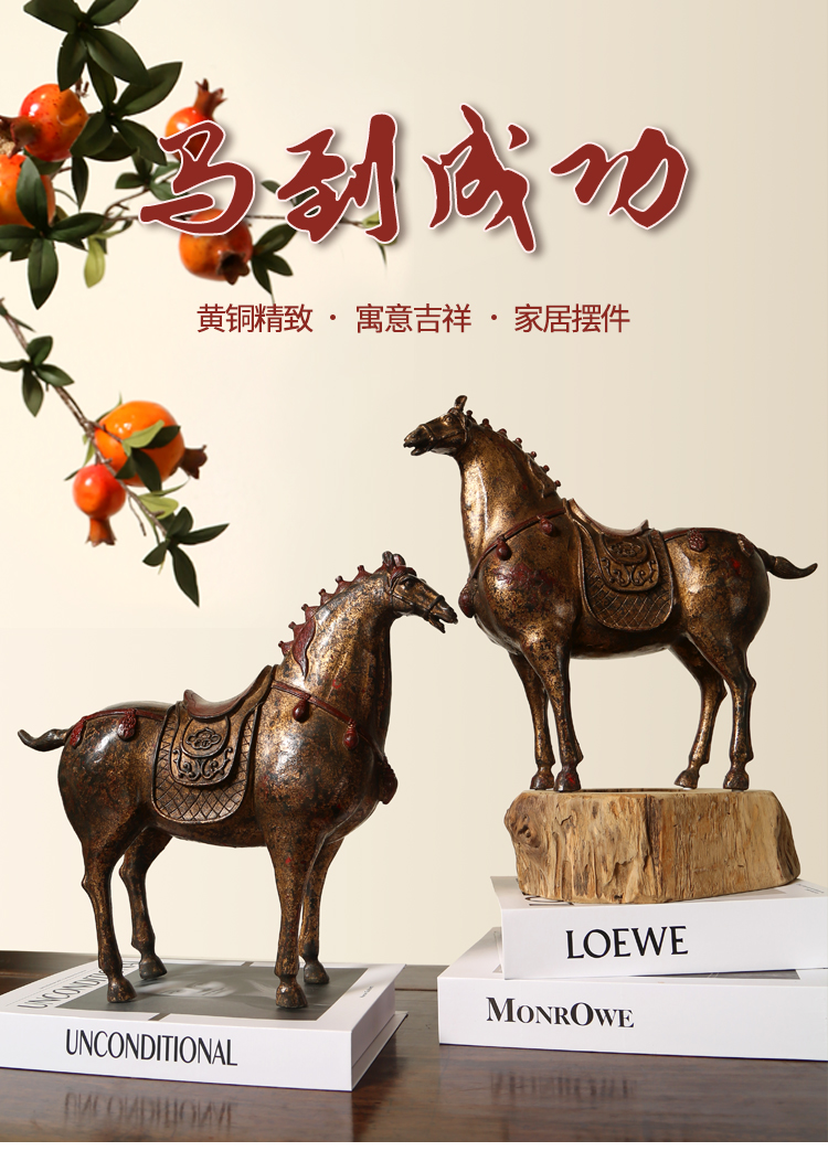 超值复古做旧铜带鞍骏马驹玄关条案台书房搭配创意摆件装饰品客厅