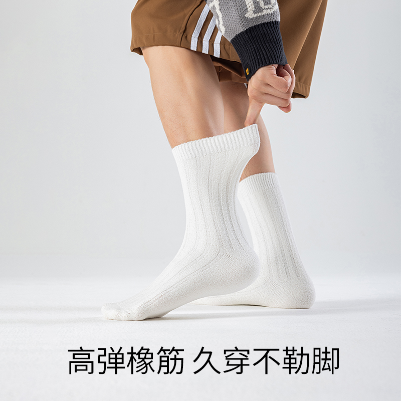 纯色简约暖阳绒地板袜纯色柔软中筒袜