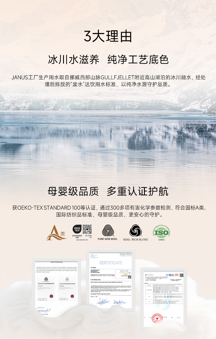 2件64折【反季特价】挪威进口JANUS100%美利奴羊毛暖+款成人秋衣/秋裤 克重260g/㎡