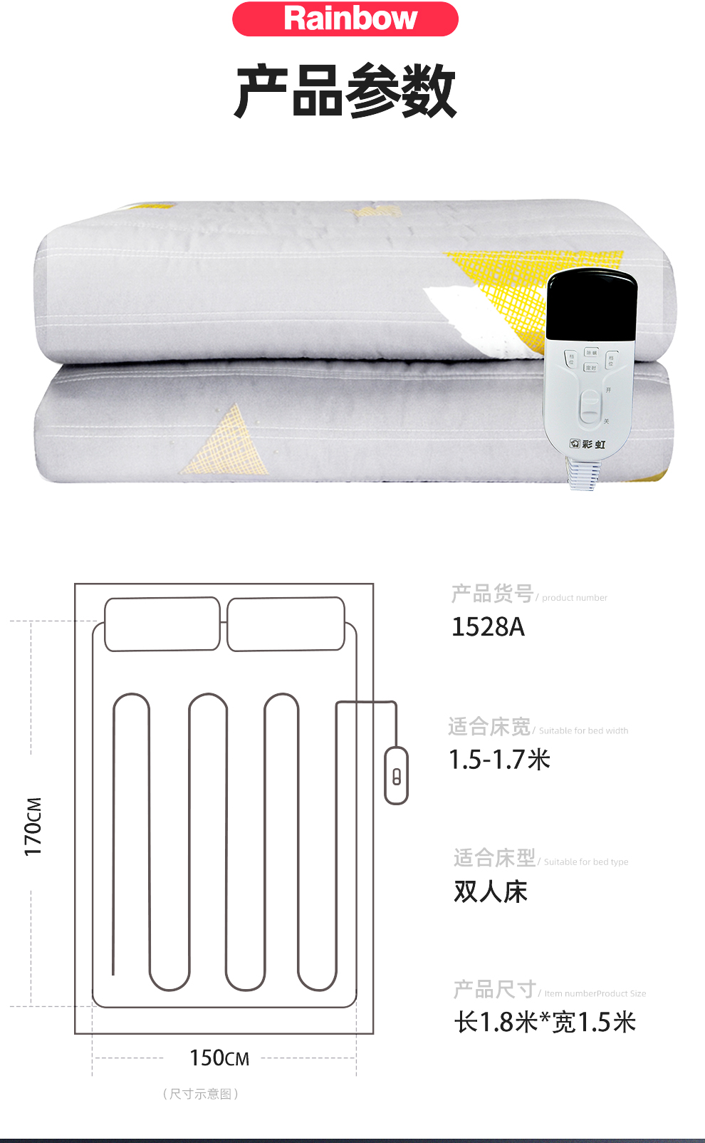 彩虹(长1.8*宽1.5米)磨毛双双控温双人电热毯 1528 【花色随机】